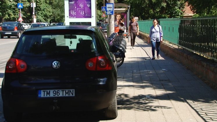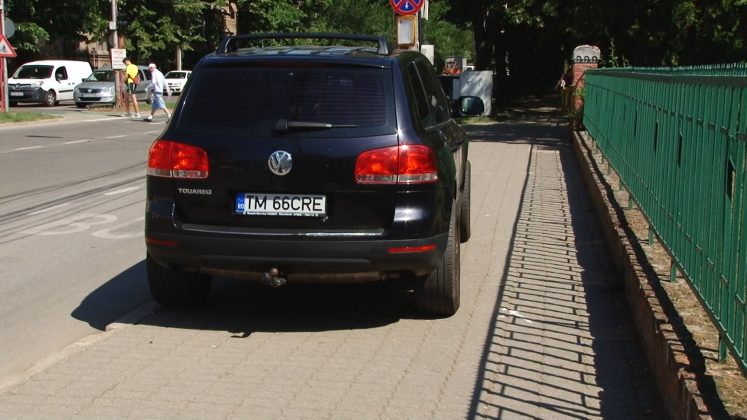 Zis și făcut. Un bizon ce a ajuns fraudulos în posesia unui permis de conducere a înțeles de aici că poate parca oriunde că doar și el este frate de trafic cu pietonii și cu cicliștii. Dacă nu a reușit să găsească un loc de parcare la un sfert de metru de unde avea interese s-a gândit să se cocoțeze pe trotuar. Unde? Chiar în locul cel mai îngust unde mai există și o alveolă pentru transportul în comun. Las să se frece pietonii de mașina sa mizerabilă. Ce contează că acolo este și o pistă de biciclete? Cine cunoaște zona știe că acolo se mai găsesc destul de ușor locuri de parcare și pe străzile lăturalnice. Ba mai mult, la acea oră nici nu era aglomerat, existând locuri libere în jur. Dar dacă posesorul de tăblărie are ambiție să stea pe trotuar și pe pista de ciclism în același timp, cine-l poate opri?