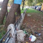 Pe un copac din parc a fost înfiptă o tăbliță pe care scrie: ”Strict interzis aruncarrea sau abandonarea deșeurilor de orice fel pe domeniul public”. Și exact la baza copacului este o adevăată rampă de gunoi. Gardurile parcului au văzut și ele zile mai bune. Vopseaua este decojită, nu a mai fost înlcuită de ani buni, iar balustradele din metal sunt desprinse în multe locuri, ceea ce ar putea fi un pericol pentru copiii care se joacă aici.