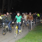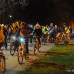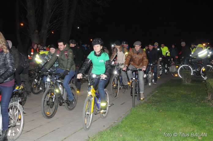 În drepul statuii soldatului ce străjuieşte parcul parcă a aterizat un OZN, când vezi o lanternă clipind în noapte ori e un copil ce se joacă ori un biciclist ce-şi face vizibilă prezenţa. Dar dacă sunt câteva sute de luminiţe trebuie să fie ceva serios. Adică câteva sute de ciclişti.