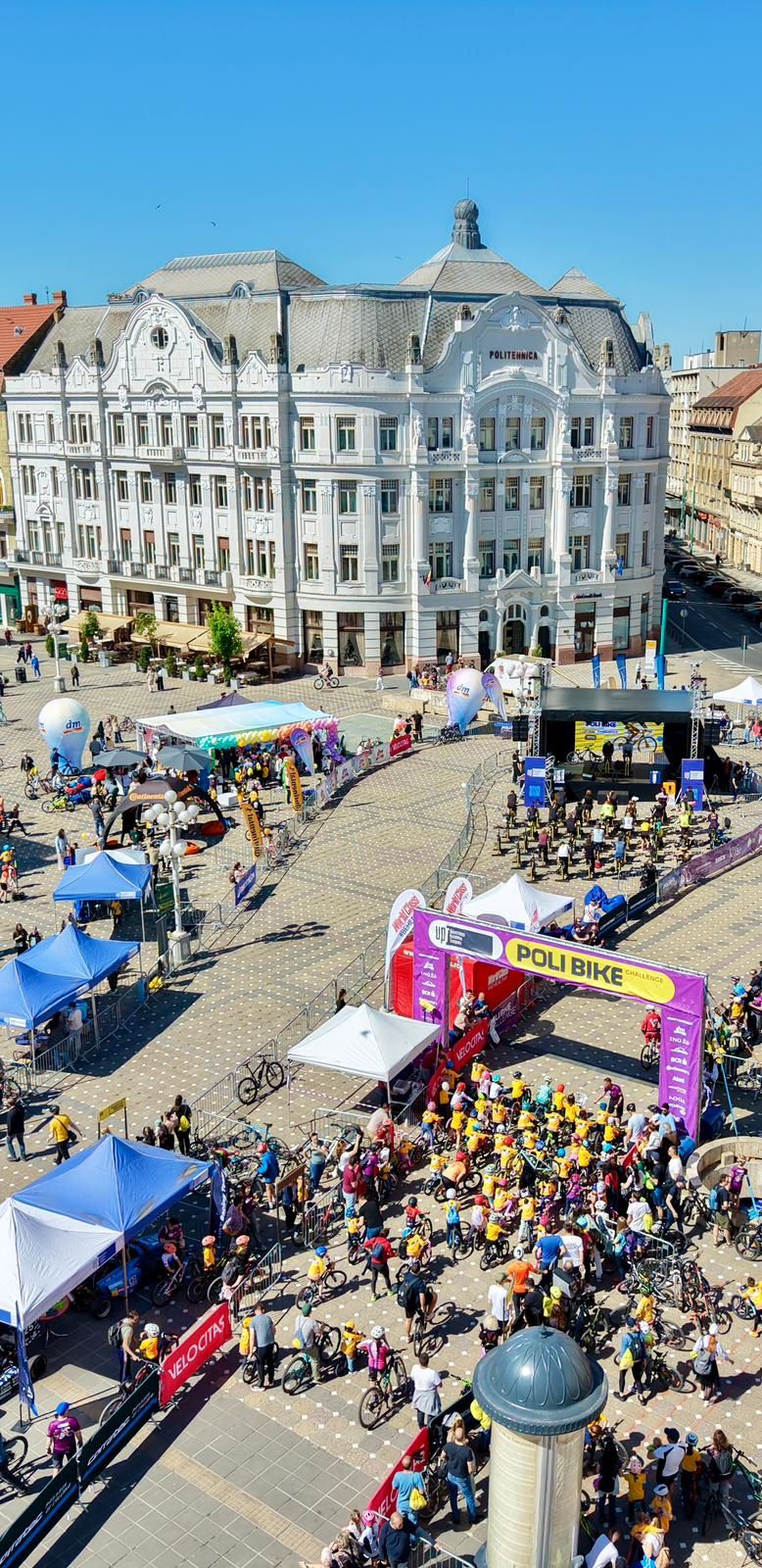 Duminică, 26 aprilie 2026, centrul Timișoarei a prins un ritm aparte. Nu doar cel al roților care se învârt, ci și al unei comunități care a ales să se adune în jurul unui eveniment devenit deja tradiție. Poli Bike Challenge, ajuns la cea de-a V-a ediție, a transformat Piața Victoriei într-un spațiu viu, plin de energie, culoare și entuziasm, confirmând încă o dată legătura profundă dintre Universitatea Politehnica Timișoara și oraș.