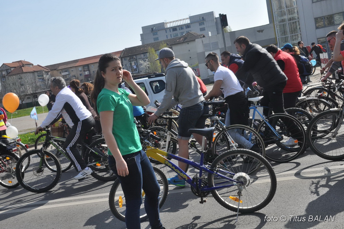 De cu dimineață, toți cei cu drag de mișcare pe doua roți s-au adunat nerăbdători pe platoul Timco, să nu scape prima pedalare oficială a primăverii. Organizatorii au fost puși în dificultate de numărul imens de participanți. Se așteptau să fie cu ceva mai mulți decât anul trecut, când au venit peste șase mii de cicliști. Dar anul acesta numărul a fost enorm, greu de estimat. „Cam… foarte multe mii” a precizat cu exactitate o domnișoară în verde, ce nu-și vedea capul de treabă.