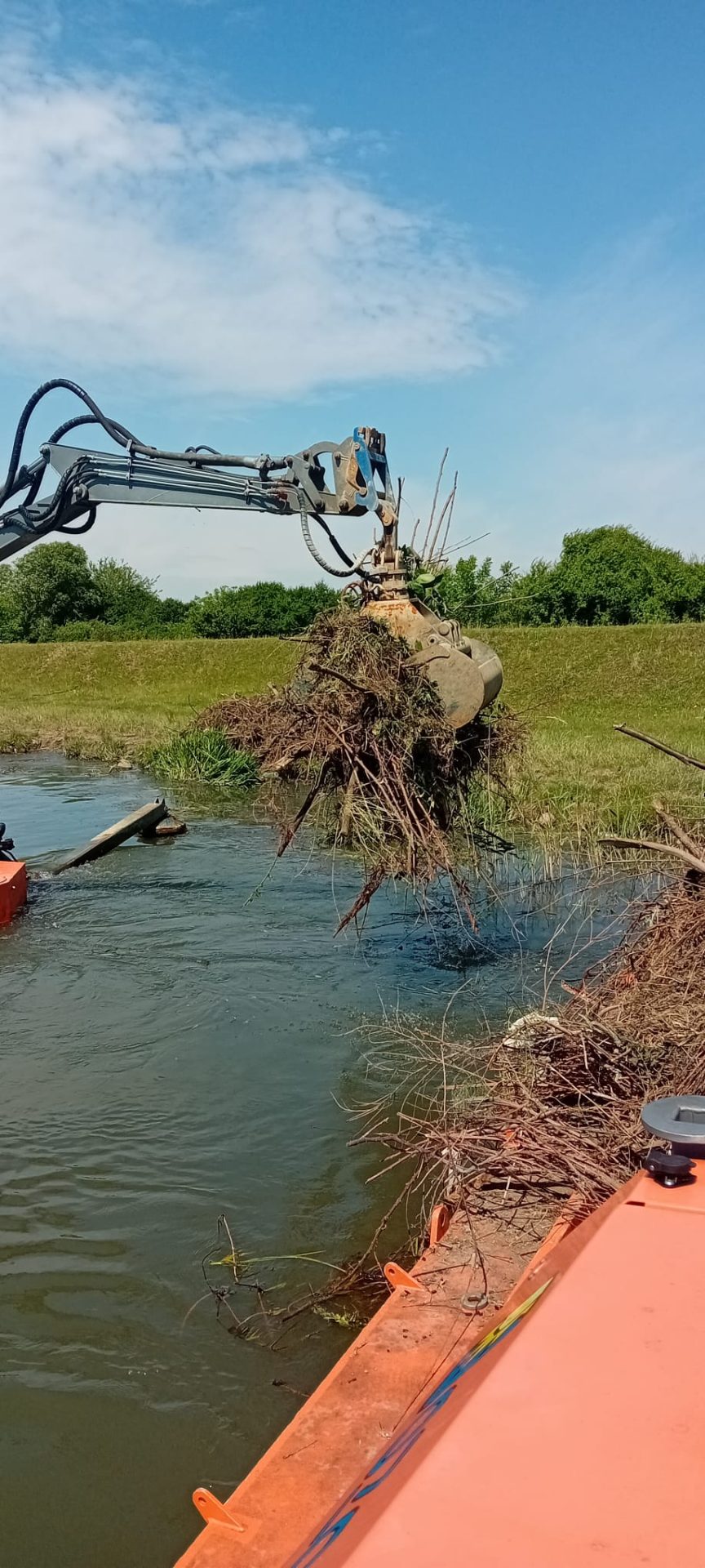 Apele Române Banat decolmatează Canalul Bega. Lucrările de curățare a malurilor de mâl, pietriș și vegetație au început la finele lunii mai.