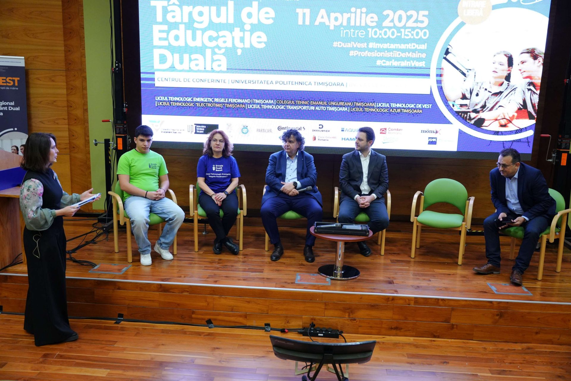 Peste 1000 de elevi au venit vineri, 11 aprilie 2025, la Centrul de Conferințe al Universității Politehnica Timișoara, unde s-a desfășurat Târgul Educației Duale „Învățământ dual pentru profesioniștii de mâine”, organizat de Consorțiul Regional pentru Învățământ Dual VEST, prin liderul de proiect Universitatea Politehnica Timișoara, și Primăria Municipiului Timișoara, în parteneriat cu Comitetul Local de Dezvoltare a Parteneriatului Social, format din autoritățile publice locale, operatori economici, unități de învățământ. A fost o oportunitate unică pentru elevi de a descoperi avantajele învățământului dual și perspectivele de carieră oferite de acesta.