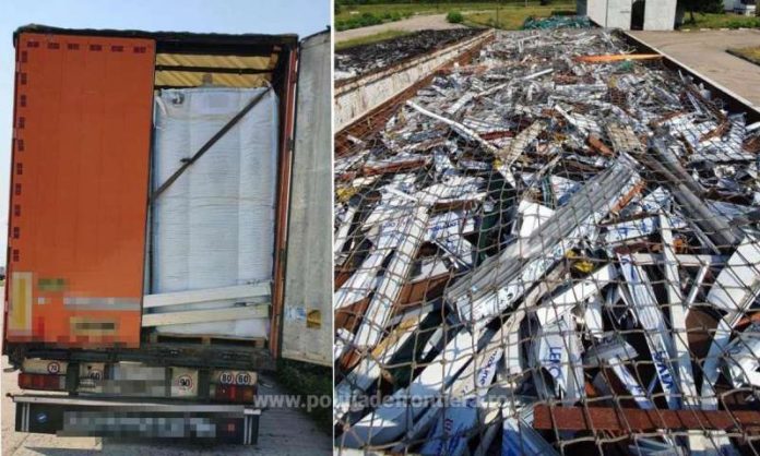 Peste 17 tone de deşeuri de aluminiu au fost descoperite într-un autotren în Punctul de Trecere a Frontierei Nădlac II, autorităţile refuzând intrarea în România pentru că încărcătura nu îndeplinea condiţiile legale.