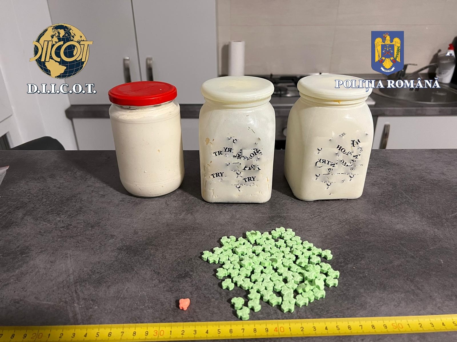 În urma celor 20 de percheziții efectuate, ieri, 10 februarie, polițiștii au ridicat în vederea confiscării, 5,2 kg de amfetamină, 246 de comprimate de ecstasy, 110 g de cocaină, 800 g de cannabis, 8.000 de euro, 8.000 de lei și cântare de precizie.