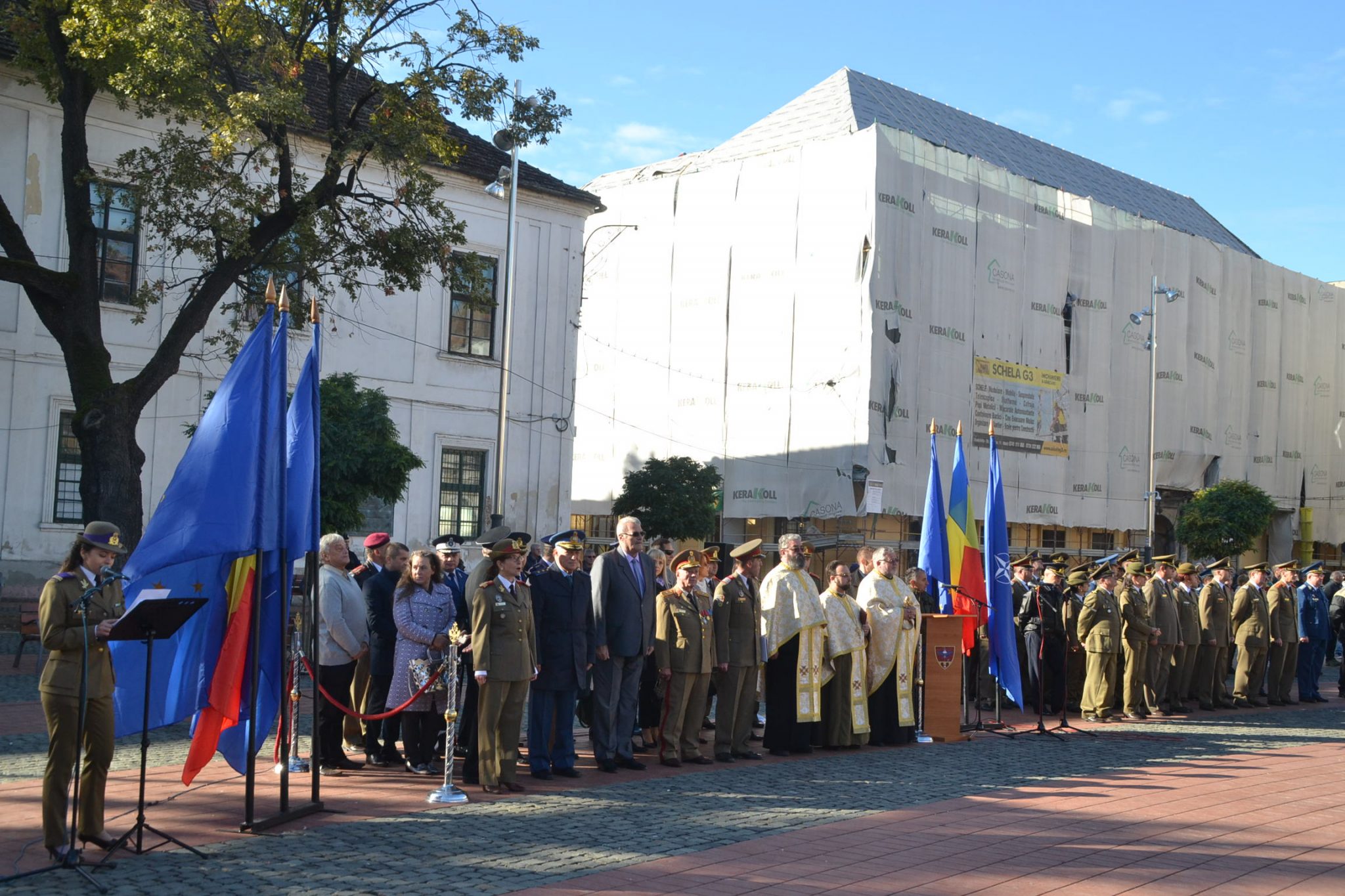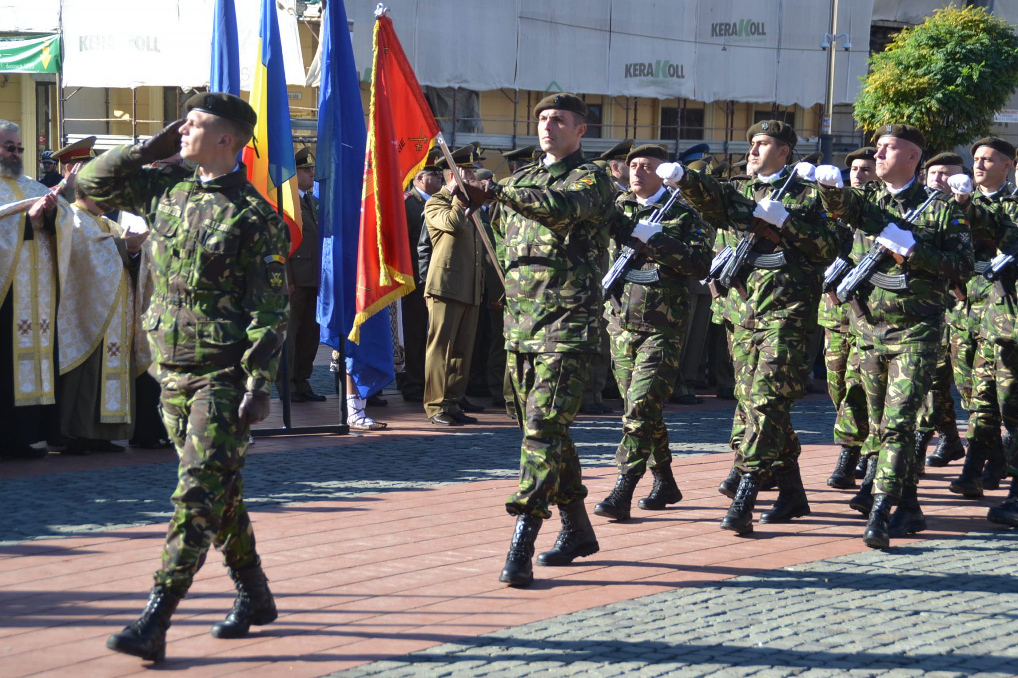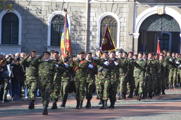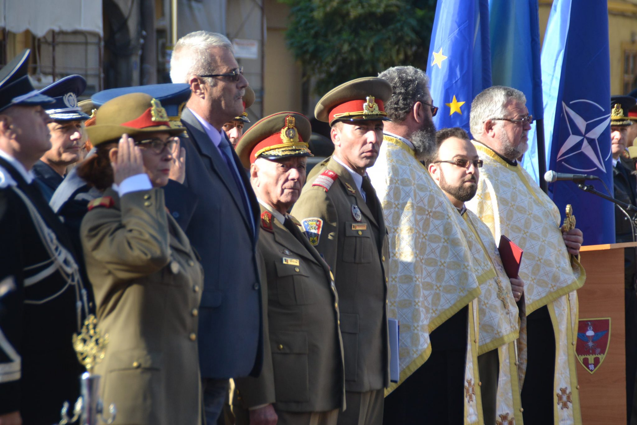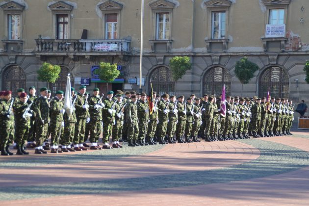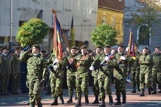 Așa cum stă bine soldaților, nu au fost decât scurte alocuțiuni. Totul a început cu intonarea imnului de stat de către fanfara militară. Un sobor de trei preoți au săvârșit un scurt serviciu religios în amintirea celor ce au căzut în bătălii sau au dispărut definitiv în prinzonierate și gulaguri de pe tot cuprinsul lumii. La final, au fost transmise cele mai bune urări de bine întregii asistențe și un călduros „La mulți ani” militarilor, din partea mitopolitului Ioan Selejan.