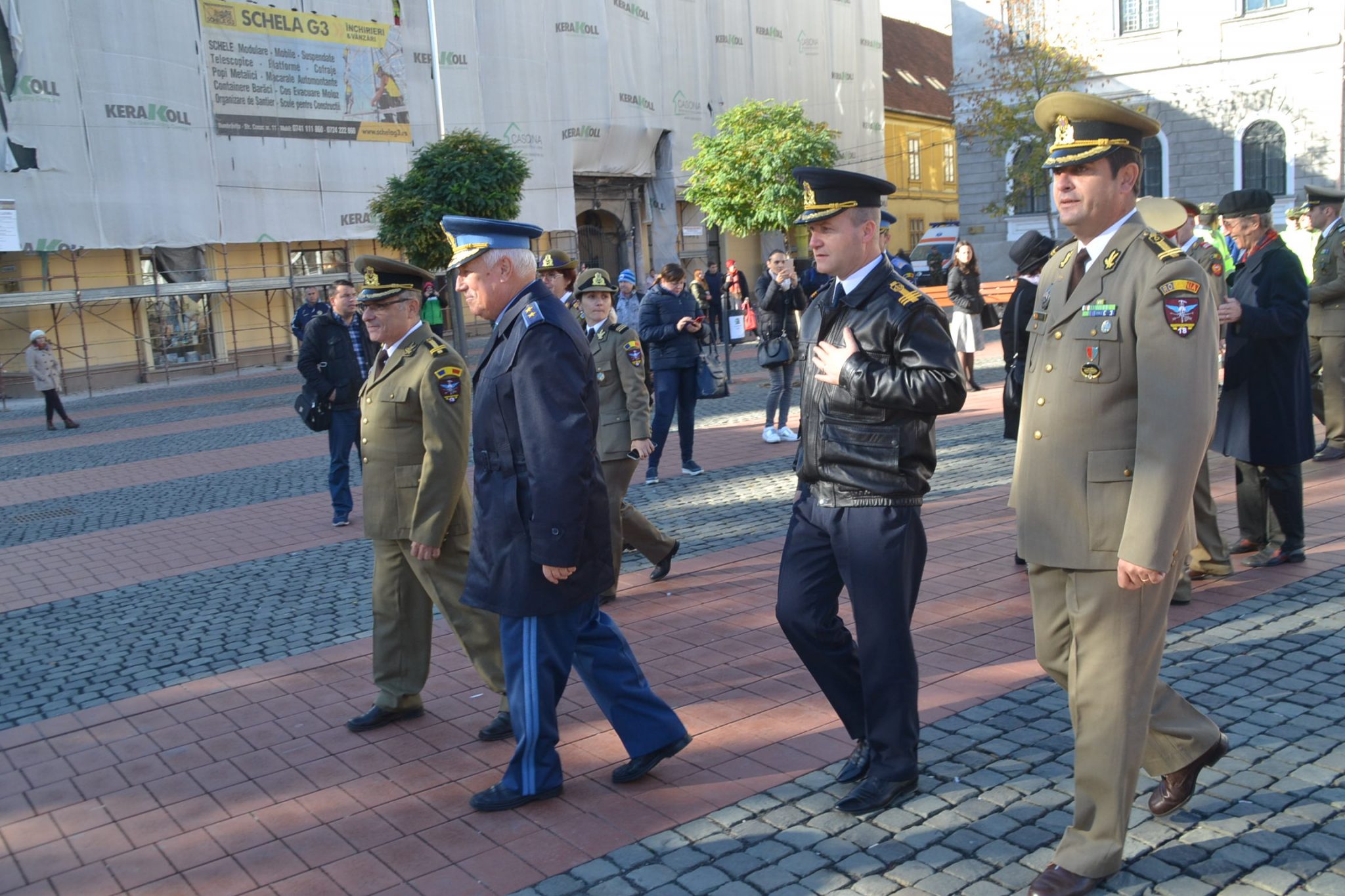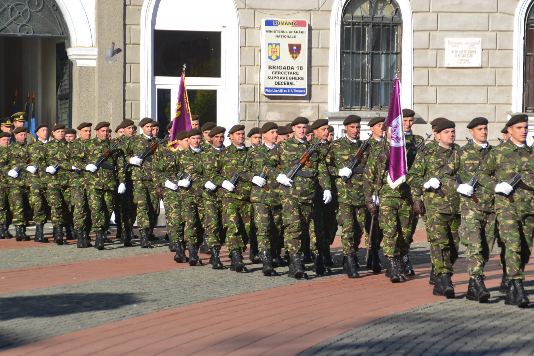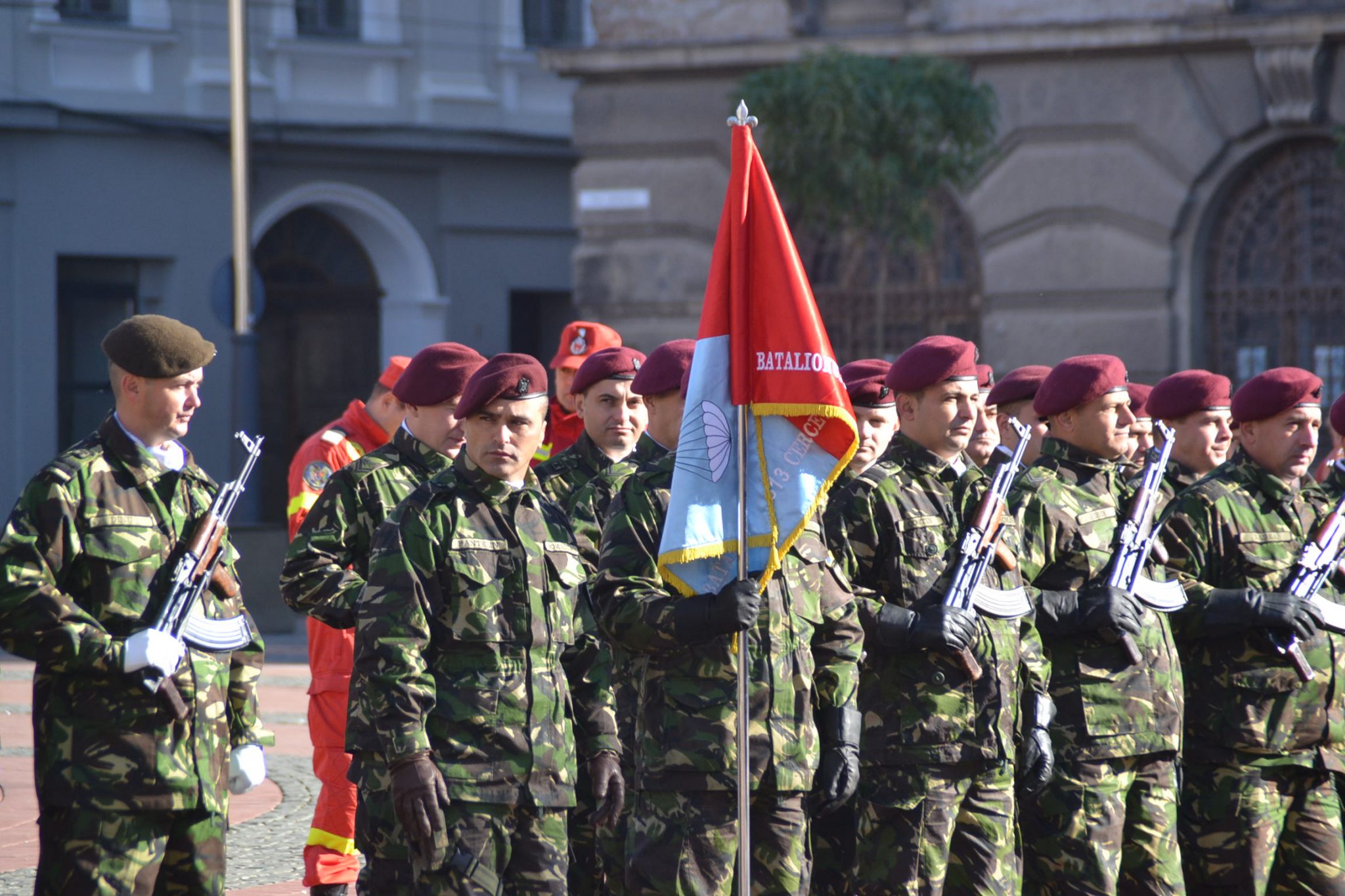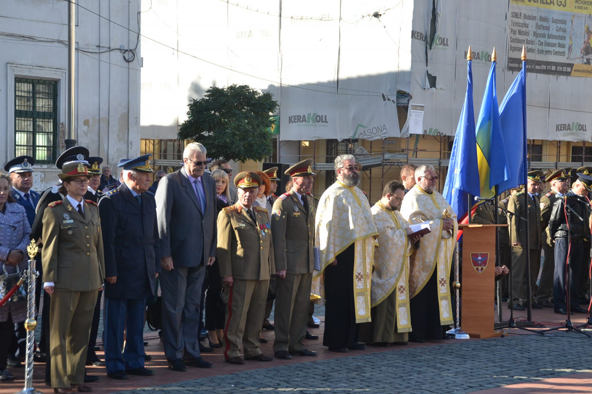 Așa cum stă bine soldaților, nu au fost decât scurte alocuțiuni. Totul a început cu intonarea imnului de stat de către fanfara militară. Un sobor de trei preoți au săvârșit un scurt serviciu religios în amintirea celor ce au căzut în bătălii sau au dispărut definitiv în prinzonierate și gulaguri de pe tot cuprinsul lumii. La final, au fost transmise cele mai bune urări de bine întregii asistențe și un călduros „La mulți ani” militarilor, din partea mitopolitului Ioan Selejan.