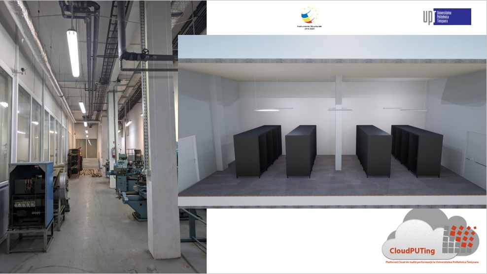 Proiectul presupune amenajarea unui spațiu dedicat de tip dataroom, în incinta UPT, cu o suprafață de 80 mp, din care 50 mp va fi dedicat doar serverelor, infrastructură de internet de minim 3 Gbps, sistem de ventilație, răcire și control al umidității, supraveghere video, control acces, sistem de alarmă antiefracție etc. În cadrul conferinței de deschidere, rectorul UPT, conf.univ.dr.ing. Florin Drăgan, care este și managerul proiectului, a vorbit despre necesitatea infrastructurilor de tip cloud în dezvoltarea viitoare a UPT, prof.univ.dr.ing. Marius Marcu, arhitectul soluției cloud, a prezentat obiectivele și direcțiile de implementare ale proiectului CloudPUTing, iar prof.univ.dr.ing. Mihai Micea, manager de implementare tehnică, a pus accentul pe susținerea activităților de cercetare și didactice folosind infrastructura cloud.
