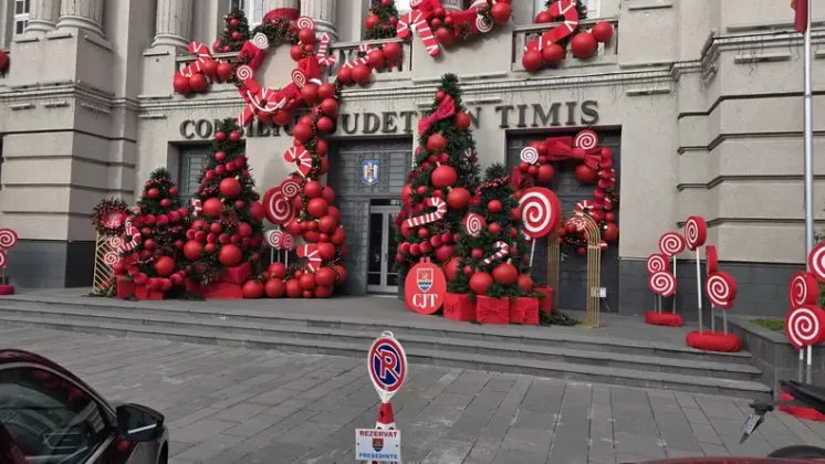 Consiliul Județean Timiș a plătit 195.000 de lei pentru împodobirea de Crăciun a Palatului Administrativ, iar Muzeul de Artă din Timișoara, instituție aflată în subordinea CJ Timiș, a achitat pentru decorurile festive, aceleiași firme, 400.000 de lei.