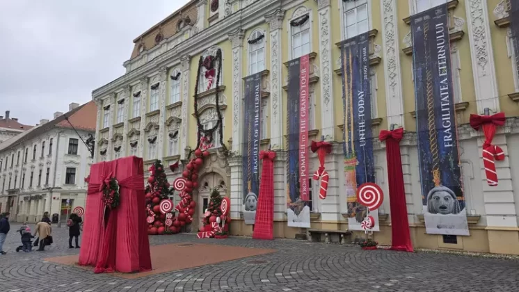 Cu ocazia aprinderii luminițelor de la Muzeul de Artă, în ajunul deschiderii expoziției „Fragilitatea Eternului. De la Pompei la Grand Tour până astăzi”, președintele Consiliului Județean Timiș, Alfred Simonis, transmitea că „acest moment este mai mult decât o simplă aprindere a luminițelor de Crăciun, e o invitație adresată timișorenilor să treacă pragul Muzeului de Artă din Palatul Baroc”.