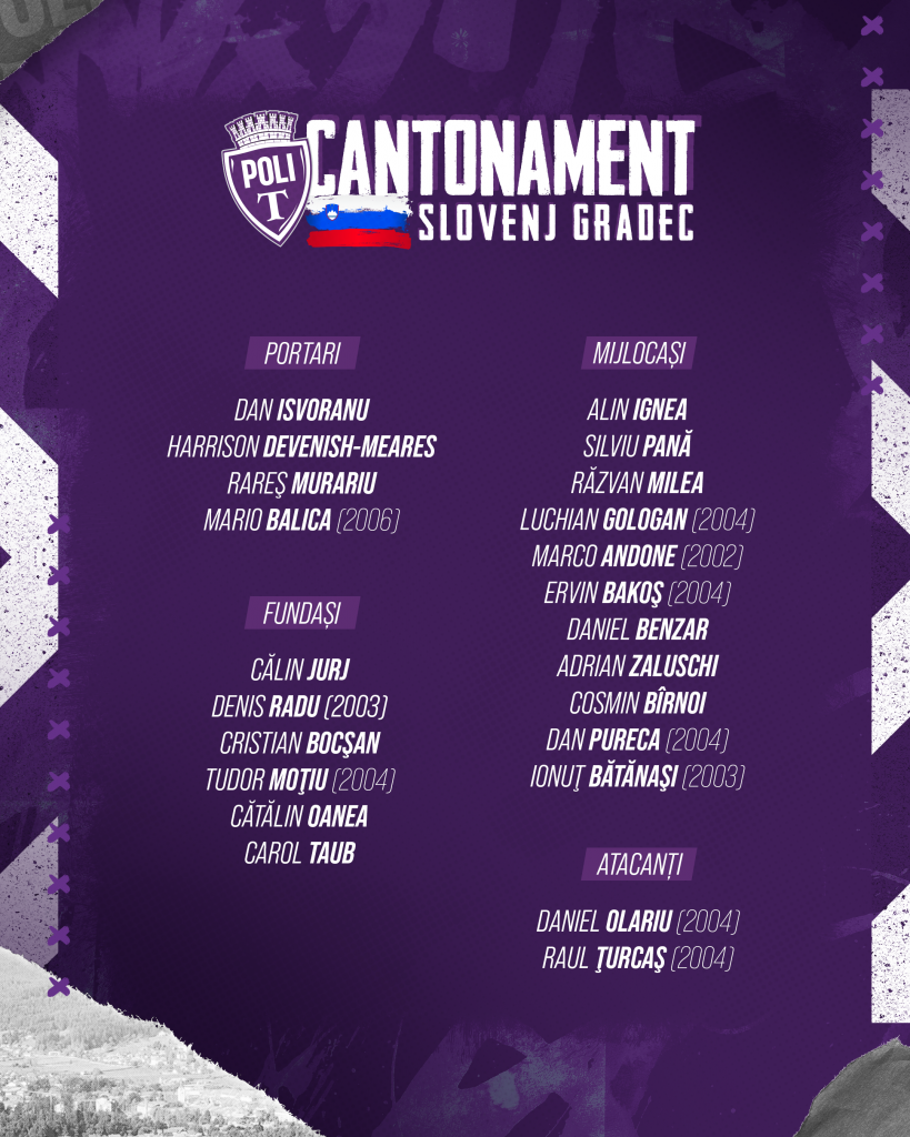 Cu jucătorii poliști a făcut deplasarea şi Ionuţ Bătănaşi (născut 2003), ex-FCSB, SPAL (Italia) şi Rapid, mijlocaş de profil ofensiv liber de contract.
