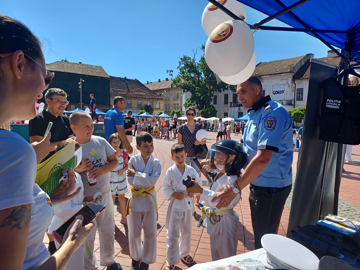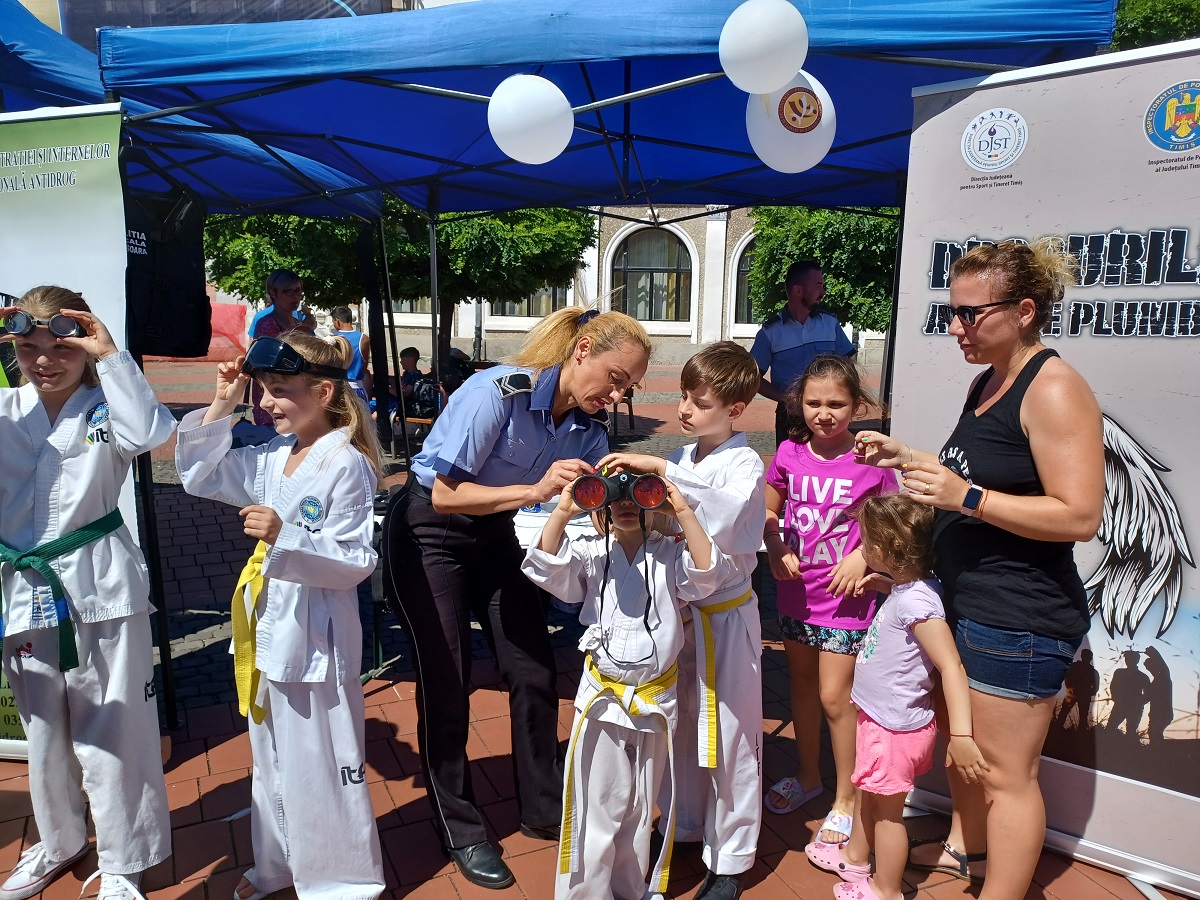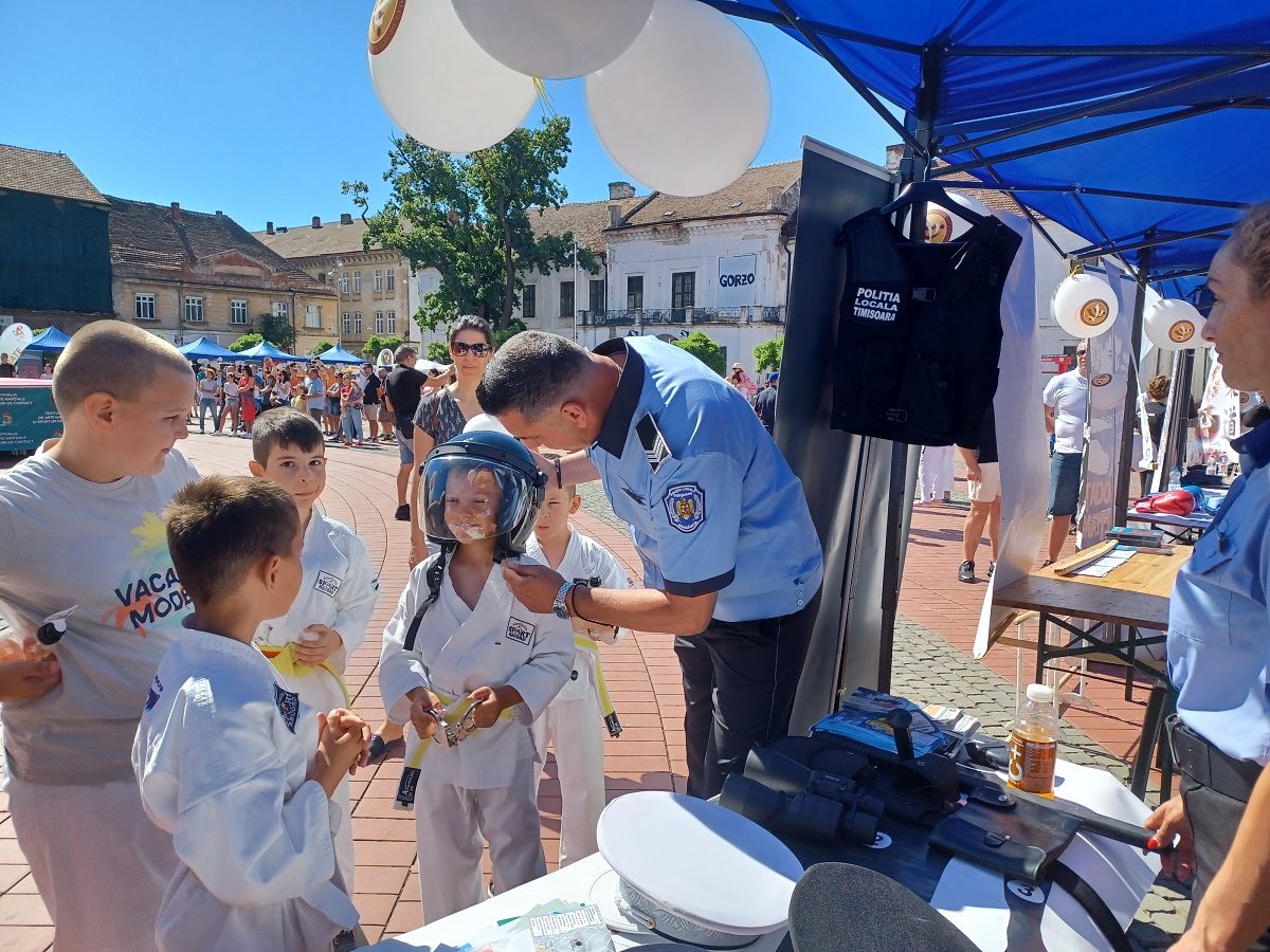 La standul de prezentare al instituției au fost alături și polițiștii din cadrul Biroului de Analiză și Prevenirea Criminalității din Inspectoratul Județean de Poliție Timiș și cei de la Agenția Națională Antidrog Timiș, toate cele trei instituții prezentand copiilor echipamente pe care le au în dotare, pliante și informații extrem de utile pentru siguranța lor.