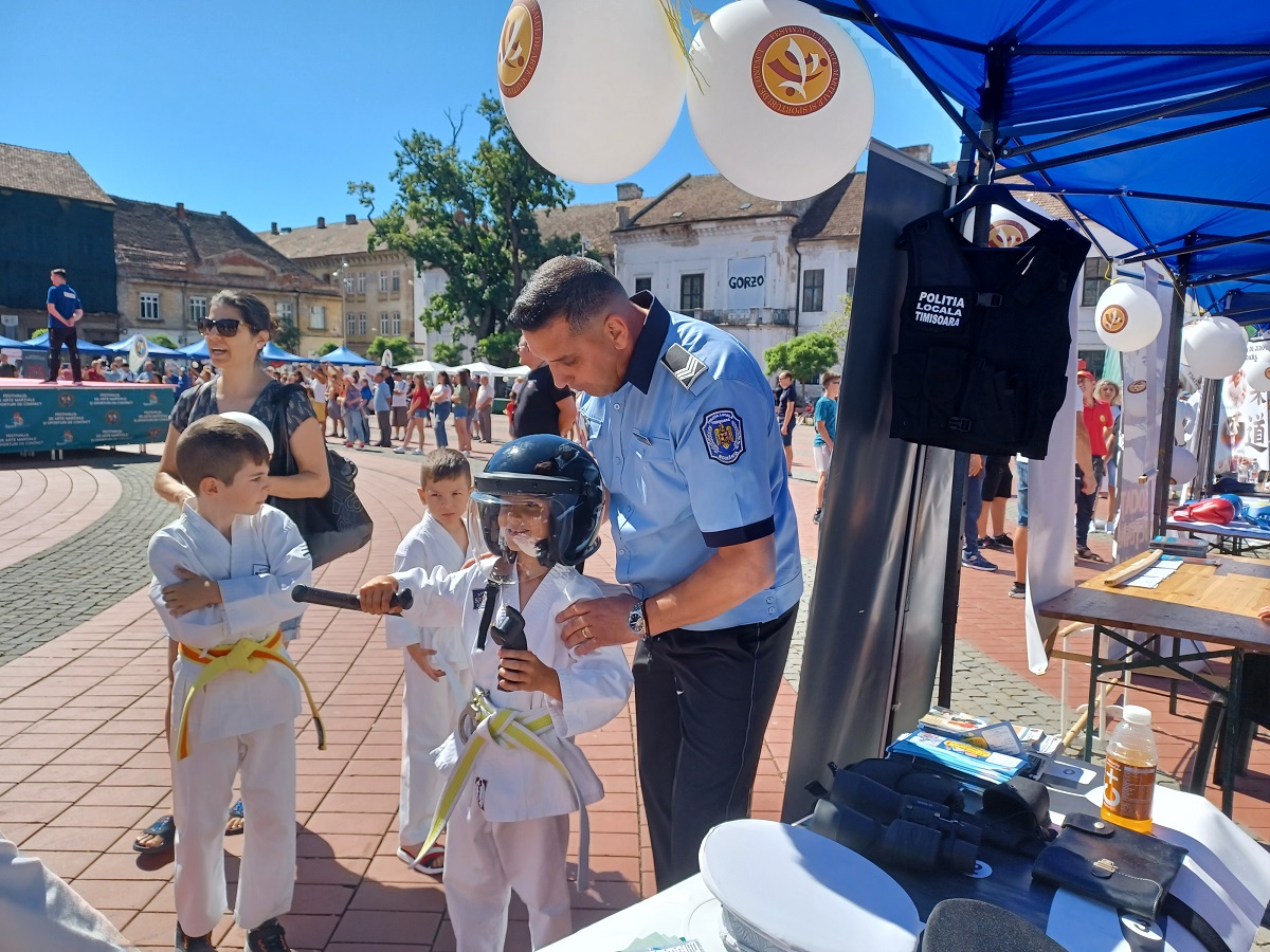 Poliția Locală Timișoara a participat, astăzi, la Festivalul de Arte Marțiale și Sporturi de Contact, desfășurat în Piața Libertății.