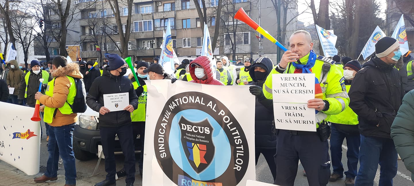 „După a treia zi de proteste fizice în fața prefecturilor, Lucian Bode, ministrul de Interne, a convocat confederațiile sindicale la o întâlnire în cadrul căreia a afirmat că Guvernul nu poate aplica integral Legea 153/2017, dar că se va acorda a 3-a tranșă de ¼ de la 1 ianuarie 2022. La acel moment, toate organizațiile sindicale au fost satisfăcute și fără a avea nicio garanție, nu numai că au renunțat la ideea de proteste, dar ne-au atacat pe noi ca organizație pentru faptul că nu ‘apreciem dialogul’ cu conducerea MAI și continuăm cu calendarul de proteste.
