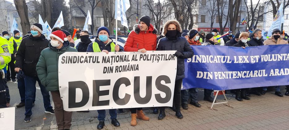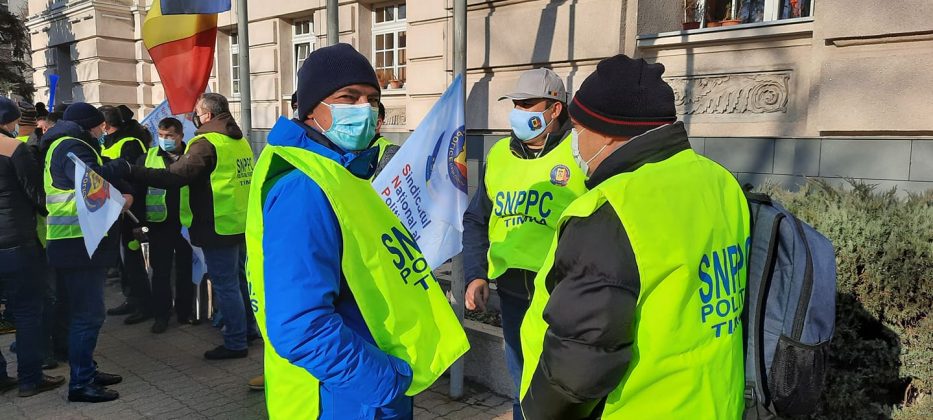 Polițiștii au mai protestat în fața Prefecturii Timiș și în 14 decembrie.