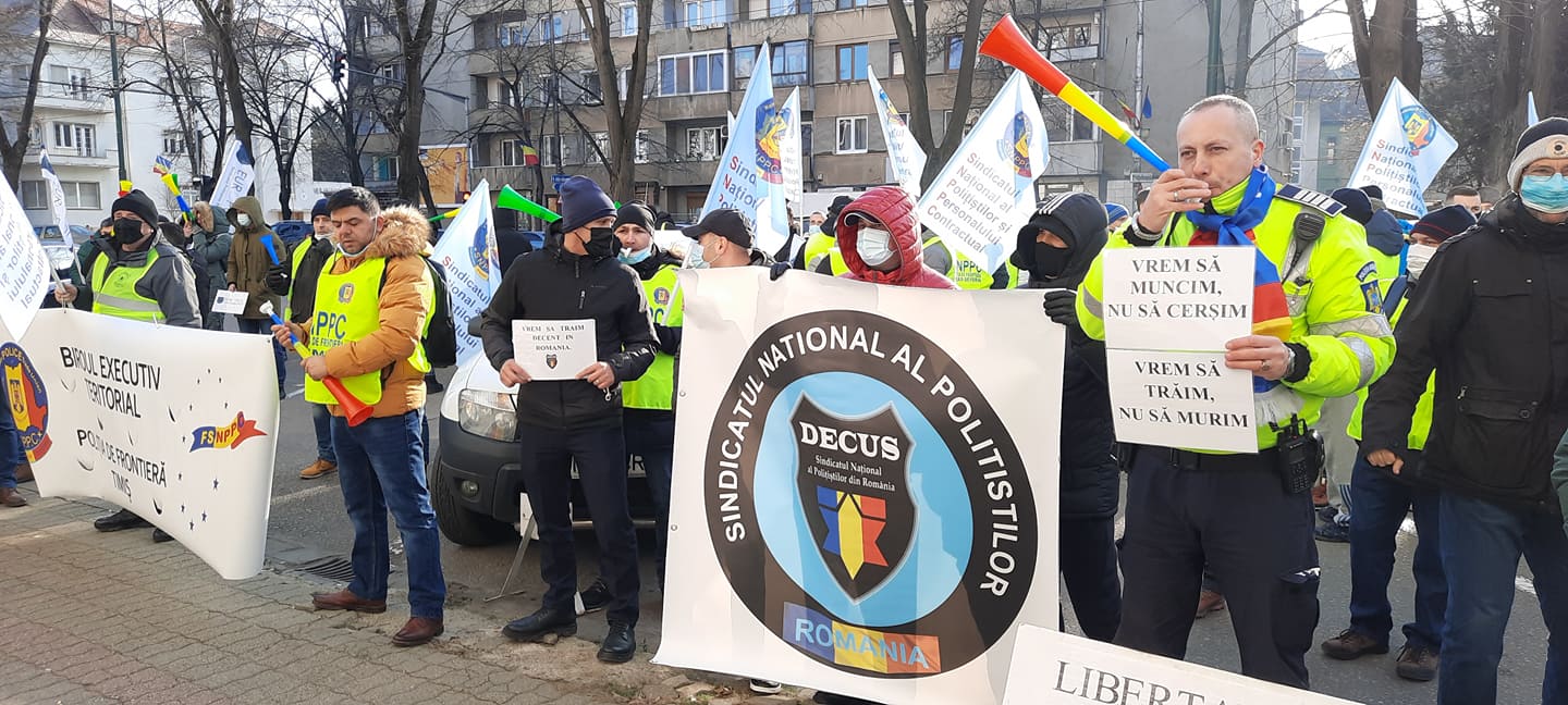 Polițiștii din Timiș au ieșit la protest în prag de Ajun. Aproximativ 200 de persoane s-au adunat, astăzi, în fața Prefecturii Timiș. Oamenii legii sunt nemulțumiți că nu au primit măririle salariale promise de Ministerul Afacerilor Interne.