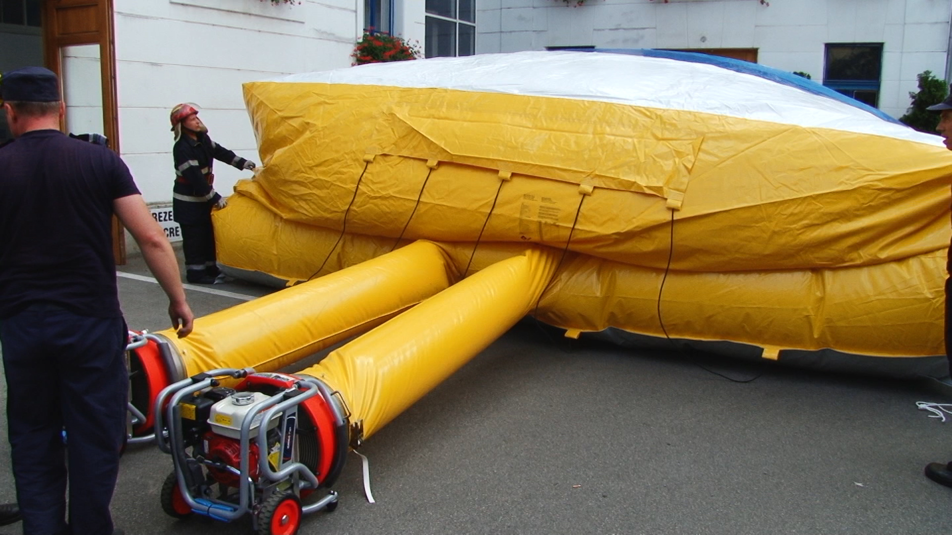 Poate că toate ar fi fost bune și frumoase dacă nu se întâmplau și bâlbele organizatorice inerente. Dar cam prea dese la noi. În condițiile în care se știa de exercițiul de incendiu simulat, nimeni nu a fost în stare să descuie blocatorul ce limitează intrarea în parcarea din spatele primăriei.