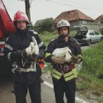 Intervenție deosebită pentru salvarea unor pui de barză părăsiți într-un cuib din localitatea Sculea.