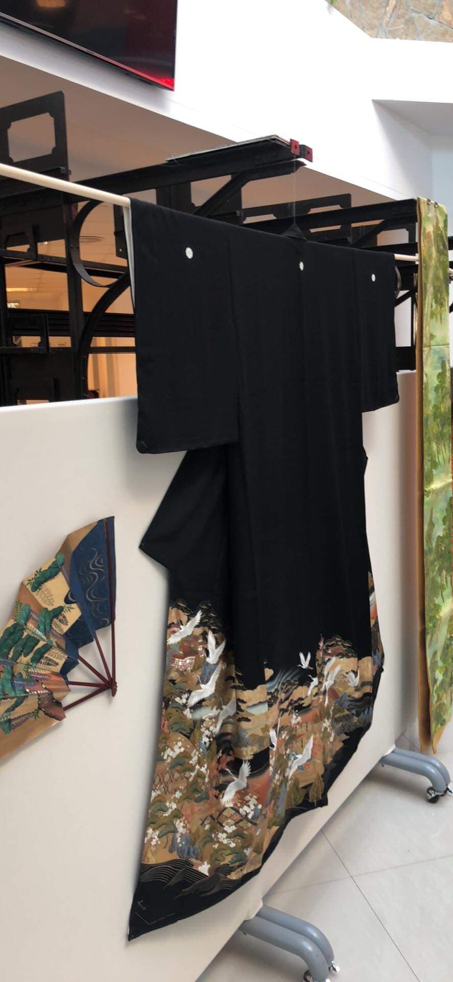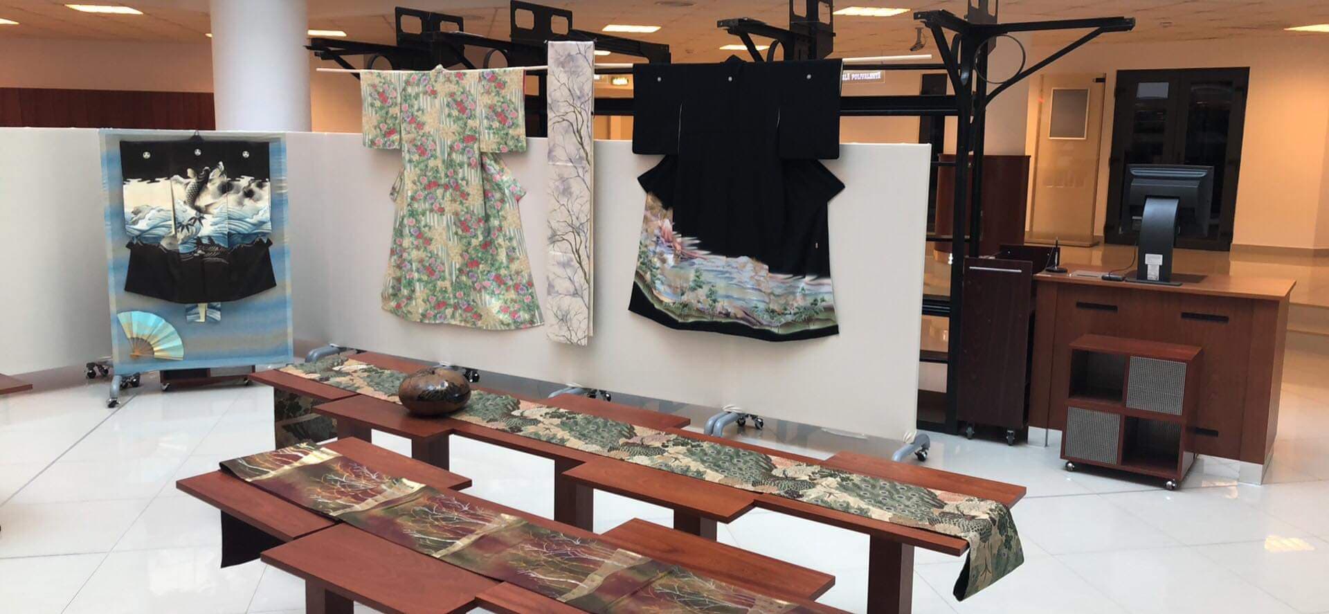 Kimonourile expuse sunt toate din mătase naturală și sunt decorate cu picturi și cusături realizate manual. Unele simbolizează natura, cu stoluri de cocori, altele lupte eroice și cele feminine de cele mai multe ori sunt acoperite cu motive florale. Expoziția de kimonouri poate fi vizitată timp de două săptămâni, în holul Bibliotecii Universității Politehnica Timișoara.