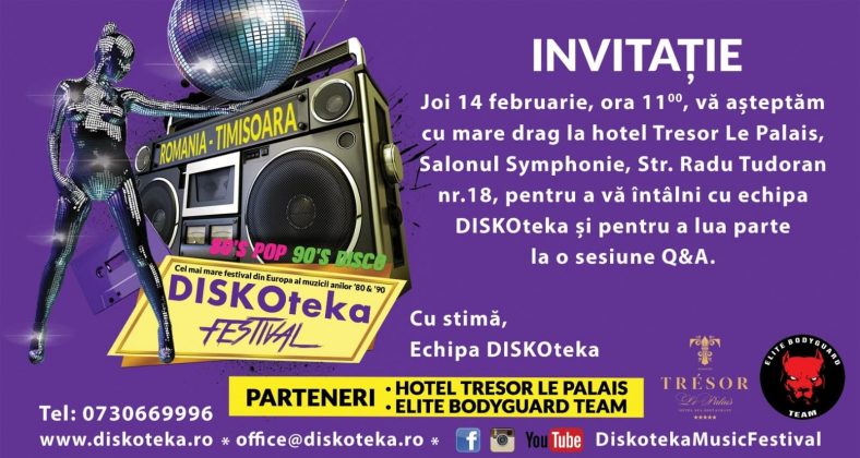 DISKOteka Festival promite sa readucă publicului nu doar atmosfera anilor trecuți, nu doar prin hiturile acelei perioade emblematice, ci și prin decoruri spectaculoase, acțiuni interactive, flash mob-uri inedite, suveniruri și cele mai delicioase food truck-uri. Premieră absolută pentru nostalgicii muzicii anilor de glorie ai genurilor europop, eurodance ori reggae, Diskoteka Festival va fi fără doar și poate cea mai grandioasă manifestare muzicală din vestul țării, manifestare de anvergură ce se alătură celor mai mari evenimente muzicale din Europa în 2019.