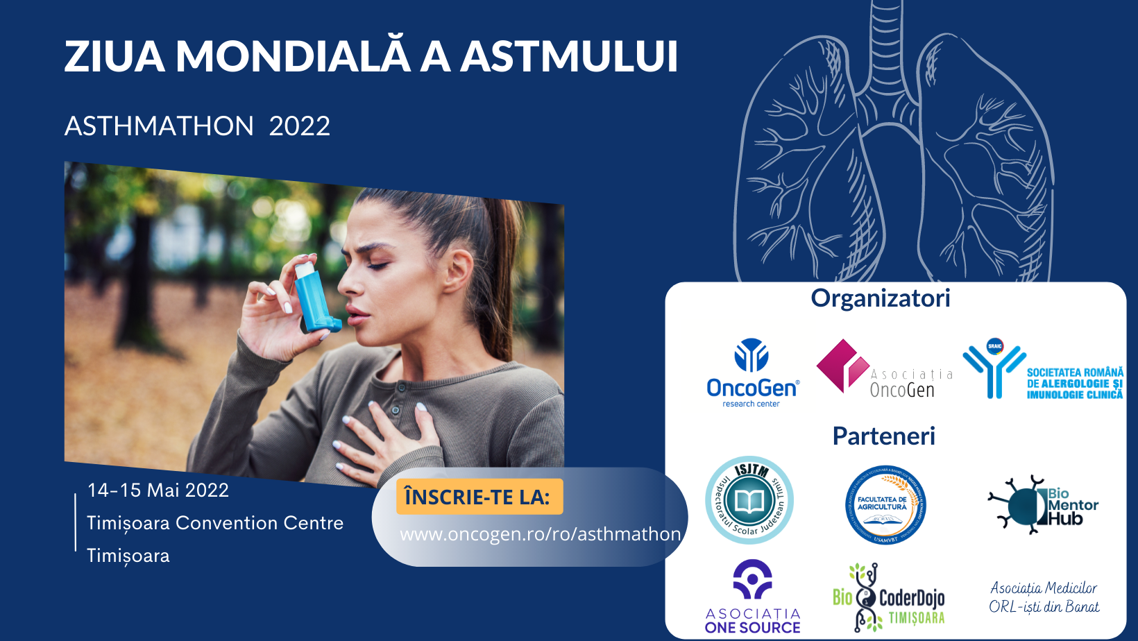 Centrul de Terapii Genice și Celulare în Tratamentul Cancerului – OncoGen, Asociația OncoGen și partenerii organizează, în zilele de 14 – 15 mai, la sediul OncoGen Timișoara, un eveniment inedit: prima ediție Asthmathon, sub egida Societății Române de Alergologie și Imunologie Clinică (SRAIC).