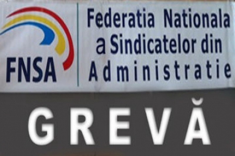 „În data de 05.07.2016, membrii de sindicat ai Federaţiei Naţionale a Sindicatelor din Administraţie (FNSA) participă la prima formă de protest din calendarul acţiunilor organizate ca urmare a declanşării de către FNSA a conflictului colectiv de muncă la nivel naţional şi faptului că în cadrul întâlnirii din data de 27.06.2016 a reprezentanţilor FNSA cu Domnul Ministru al MMFPSPV nu s-a ajuns la niciun consens în cadrul procedurii de conciliere, şi anume grevă de o oră la începutul programului de lucru”, transmite Sindicatul Funcţionarilor din Administraţia Publică.
