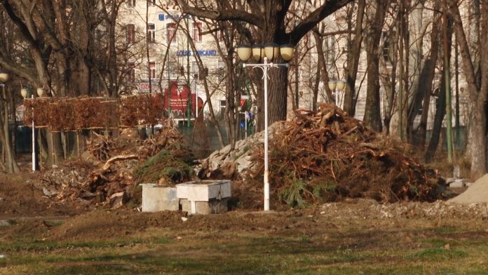 La Parcul Central Anton Scudier, reabilitarea a început din data de 31 mai a anului trecut. Proiectul are termen de finalizare un an şi constă, printre altele, în modernizarea parcului cu alei iluminat public, placări cu piatră naturală, sistem de irigaţie sau spaţiu mai mare pentru jucătorii de şah etc. În prezent, în parc se găsesc sticle sparte, peturi de apă sau de bere, precum şi câteva caserole de plastic pentru mâncare. Un lucru în comun al celor două parcuri sunt grămezile de noroi, având urme lăsate de maşinile de lucru.