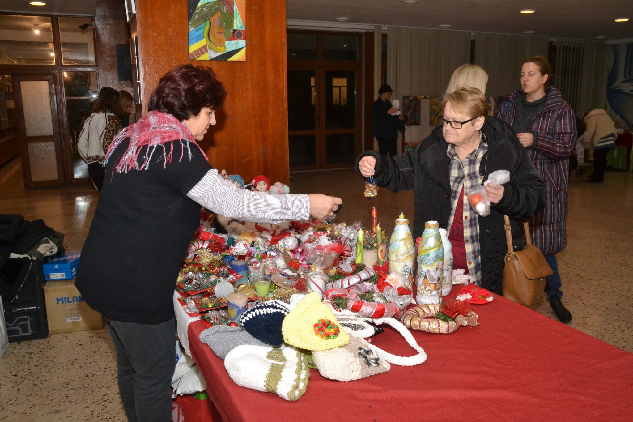 Holul mare al sălii de spectacole oferea un alt tip de spectacol. Mese pline cu obiecte artizanale făcute din cele mai felurite materiale, majoritatea recuperate, erau oferite la prețuri simbolice pentru toți cei ce doreau obiecte decorative pentru sărbătorile ce vin.