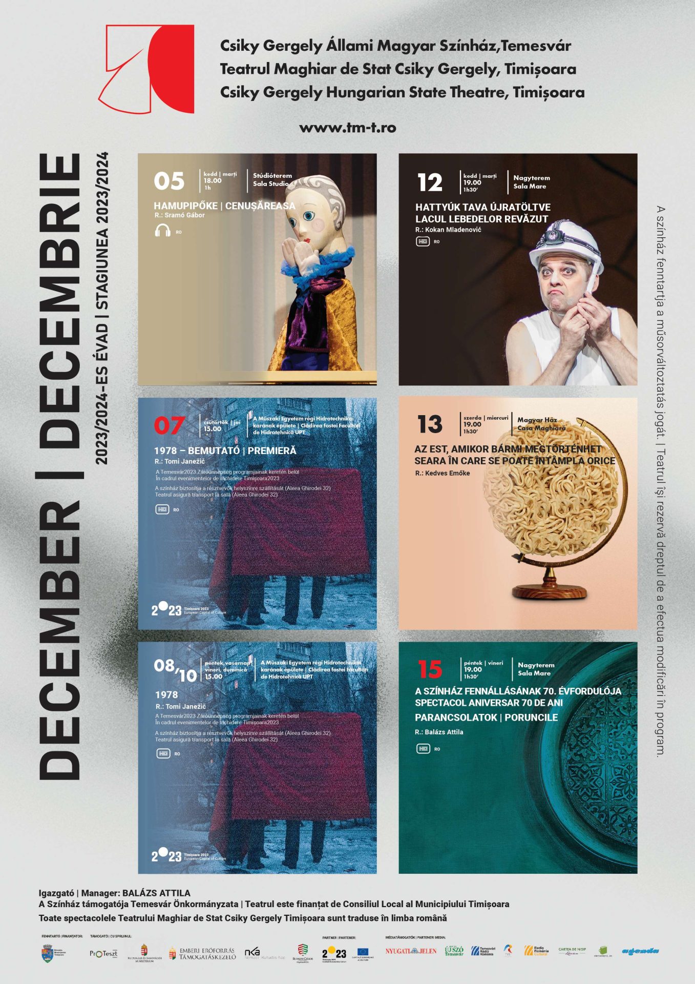 Luna decembrie aduce la Teatrul Maghiar de Stat Csiky Gergely două evenimente importante: o premieră absolută și un spectacol ce va marca aniversarea de 70 de ani a instituției.