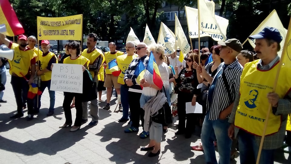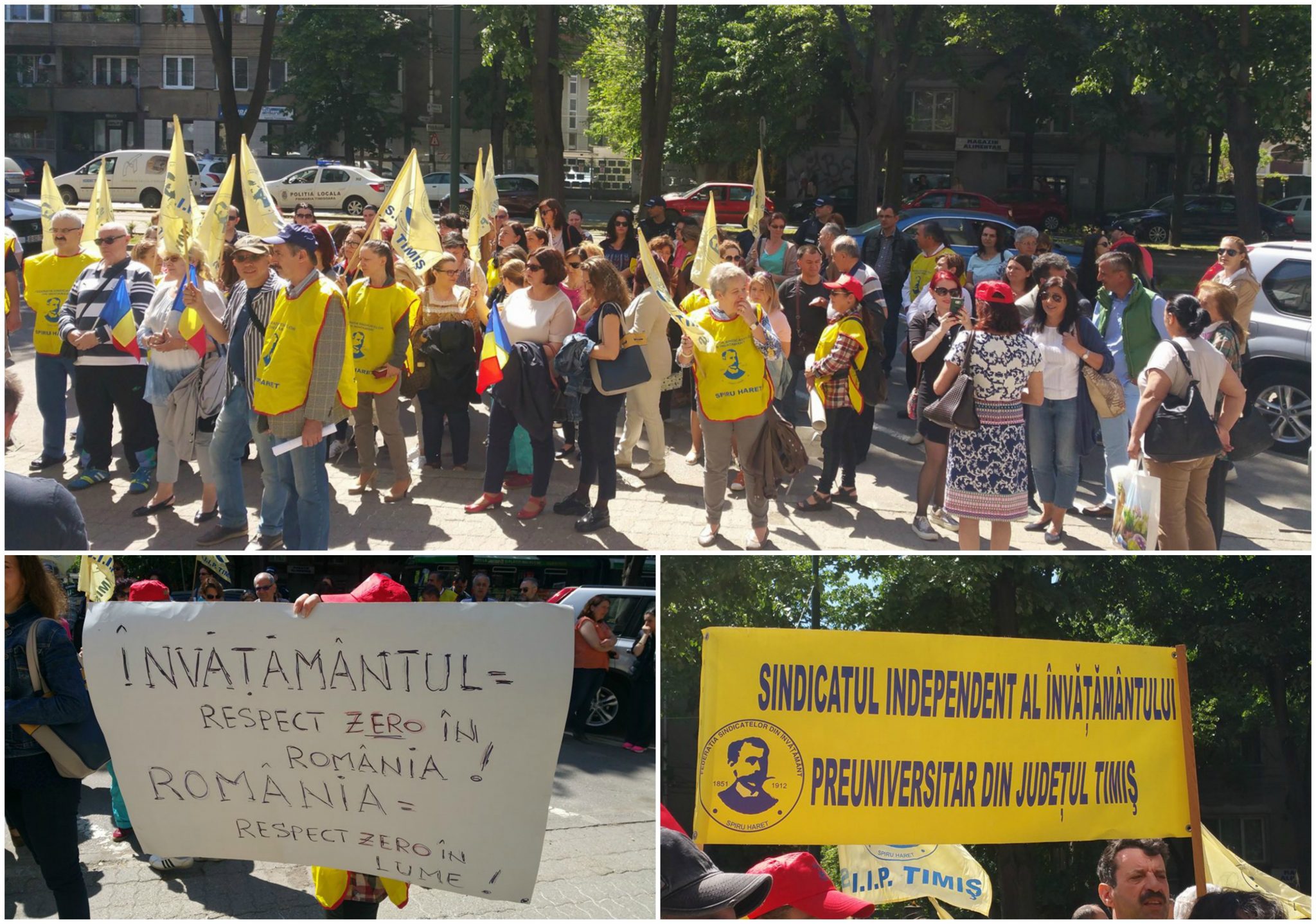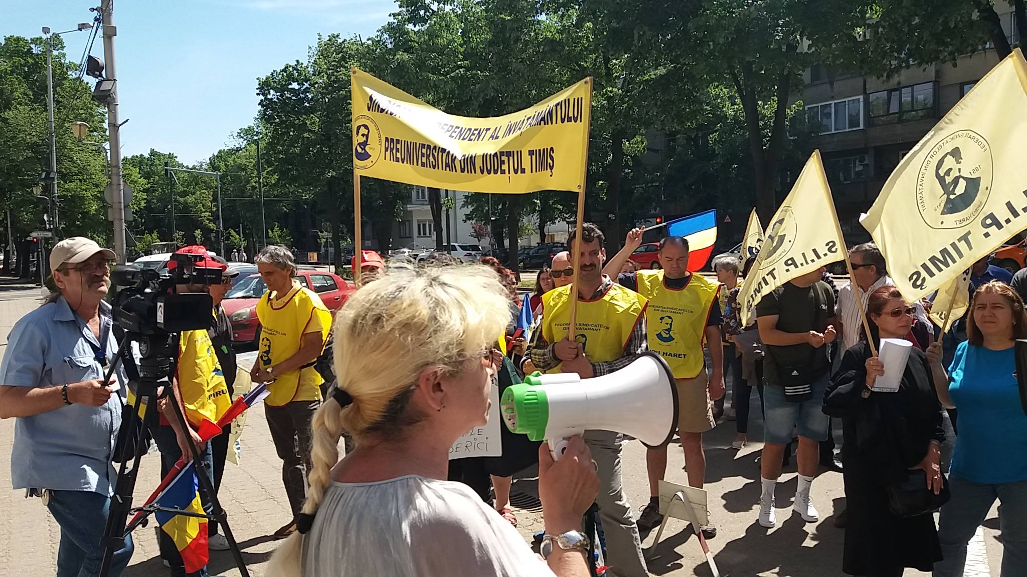 Protestul profesorilor din fața Prefecturii Timiș nu a avut efectul scontat. Doar aproximativ 50 de persoane au ieșit în stradă, vineri, la prânz.