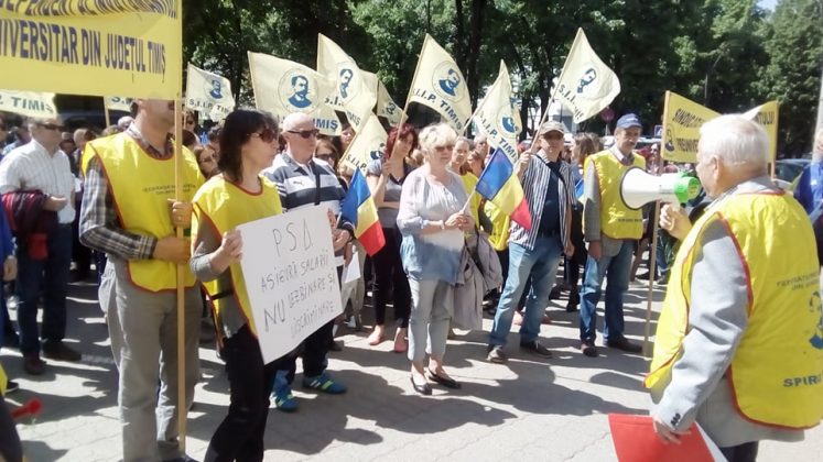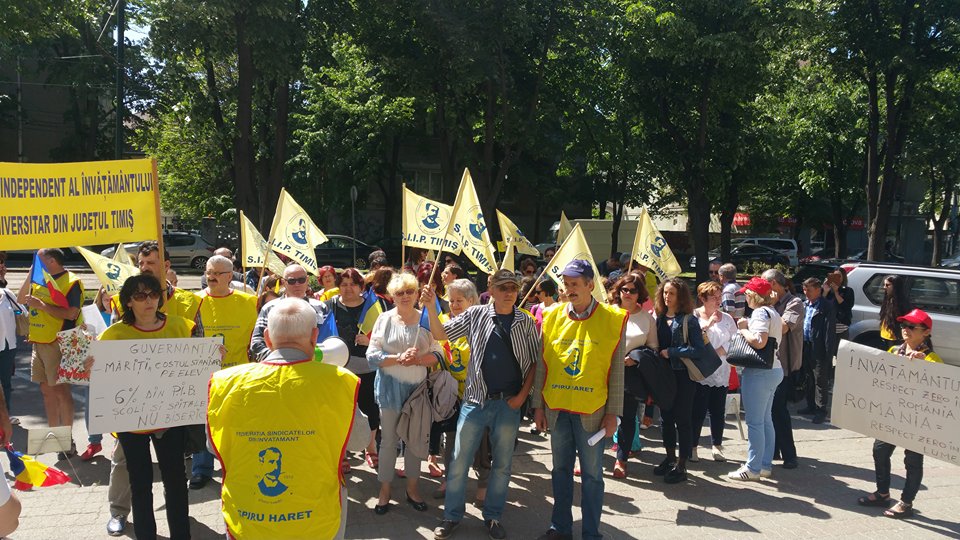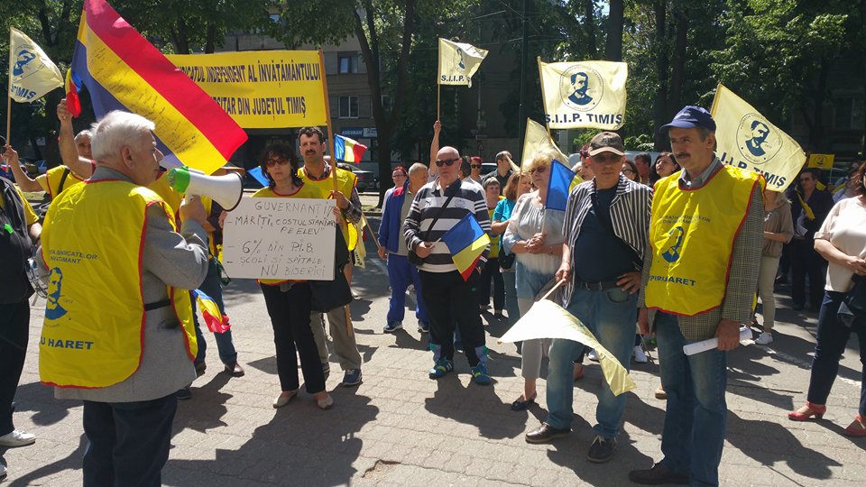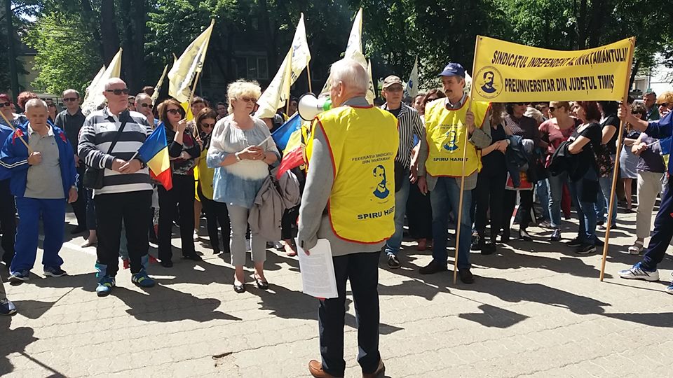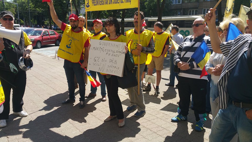 Dascălii prezenți la miting sunt nemulțumiți ca directorilor școlilor li s-a impus să facă economii pentru a putea plăti salariile mărite. Iar asta se traduce prin scăderea numărului orelor de predare, concedierea femeilor de serviciu sau a paznicilor.