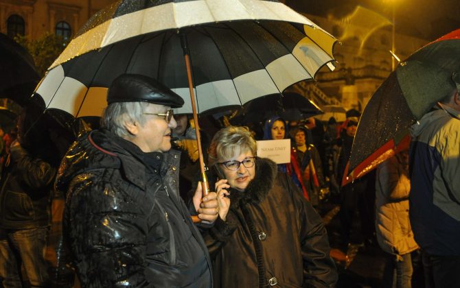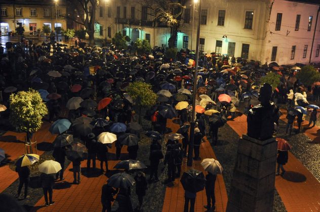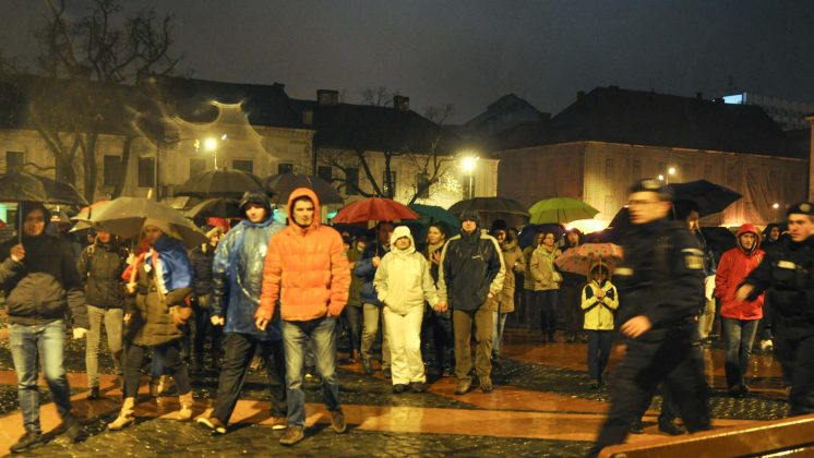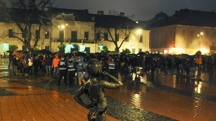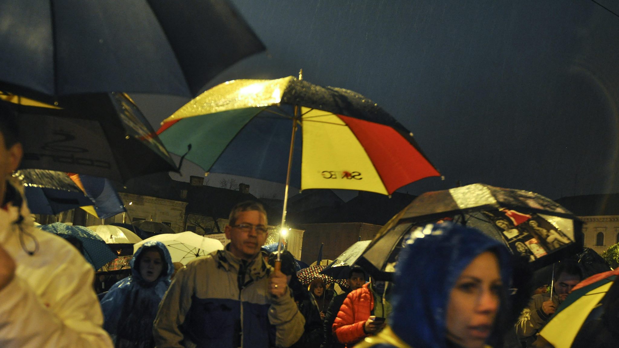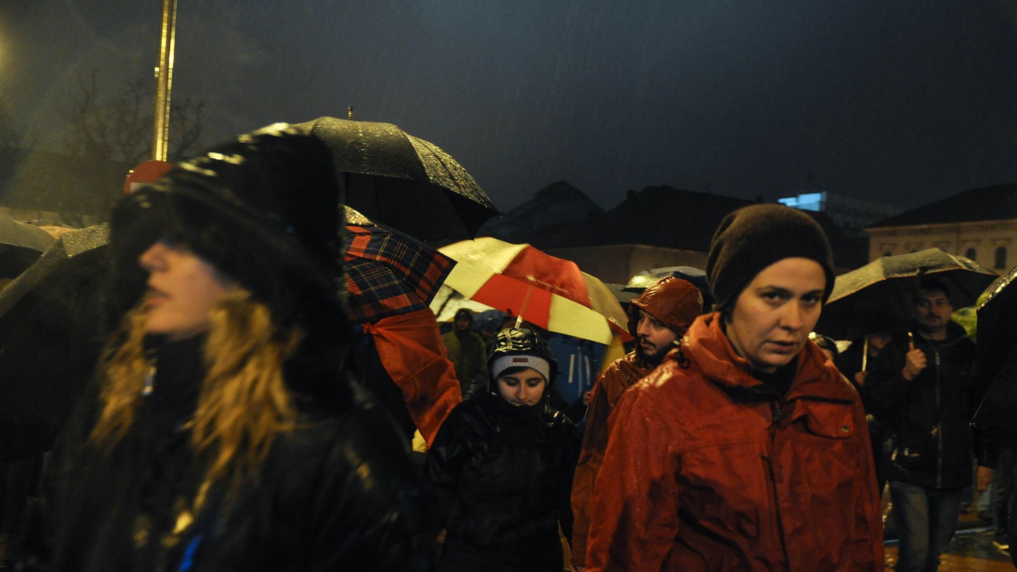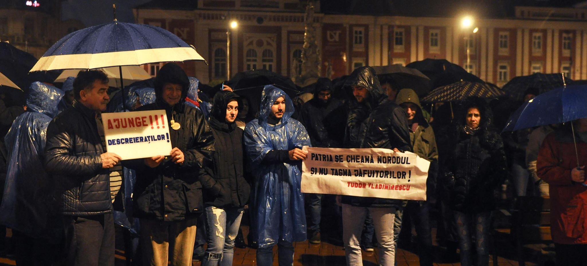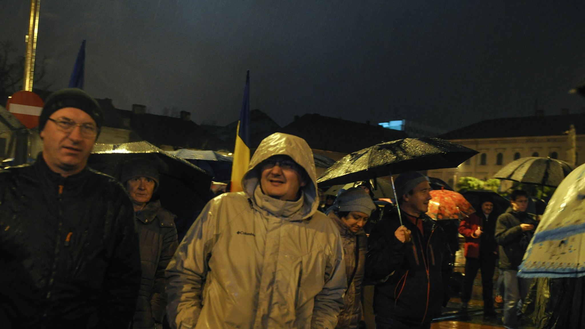 Timișorenii au ieșit la protest, în Piața Liberării, așa cum au anunțat. Însă ploaia i-a ținut pe mulți în case. Aproximativ 200 de persoane au ieșit iniâial în centrul istoric să spună ”Nu!” Legilor justiției. Oamenii au venit înarmați cu vuvuzele, fluiere și… umbrele. Protestatarii strigă: ”Demisia!”; ”Nu vreau sa fiu o nație de hoți!” și ”PSD ciuma roșie”. Manifestanții au plecat în marș prin Centrul istoric.