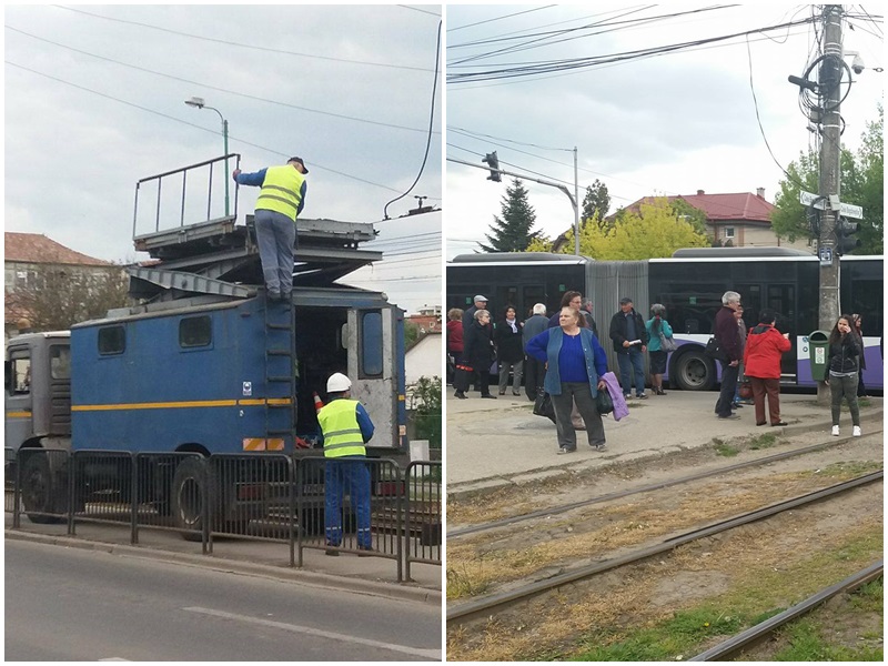 În timpul acestor tărășenii iată apare și o mașină de intervenție ce vrea să repare linia de contact (sârma de sus). Cam la o oră și un sfert de la pana de curent. Dacă au fost anunțați de un sol pedestru acesta trebuia să facă maxim 20 de minute până la sediu și să cheme specialiștii. Se pare că solul a mai zăbovit pe drum la o bere!?. Sau nu s-a auzit de telefoane mobile la Regie de transport?!