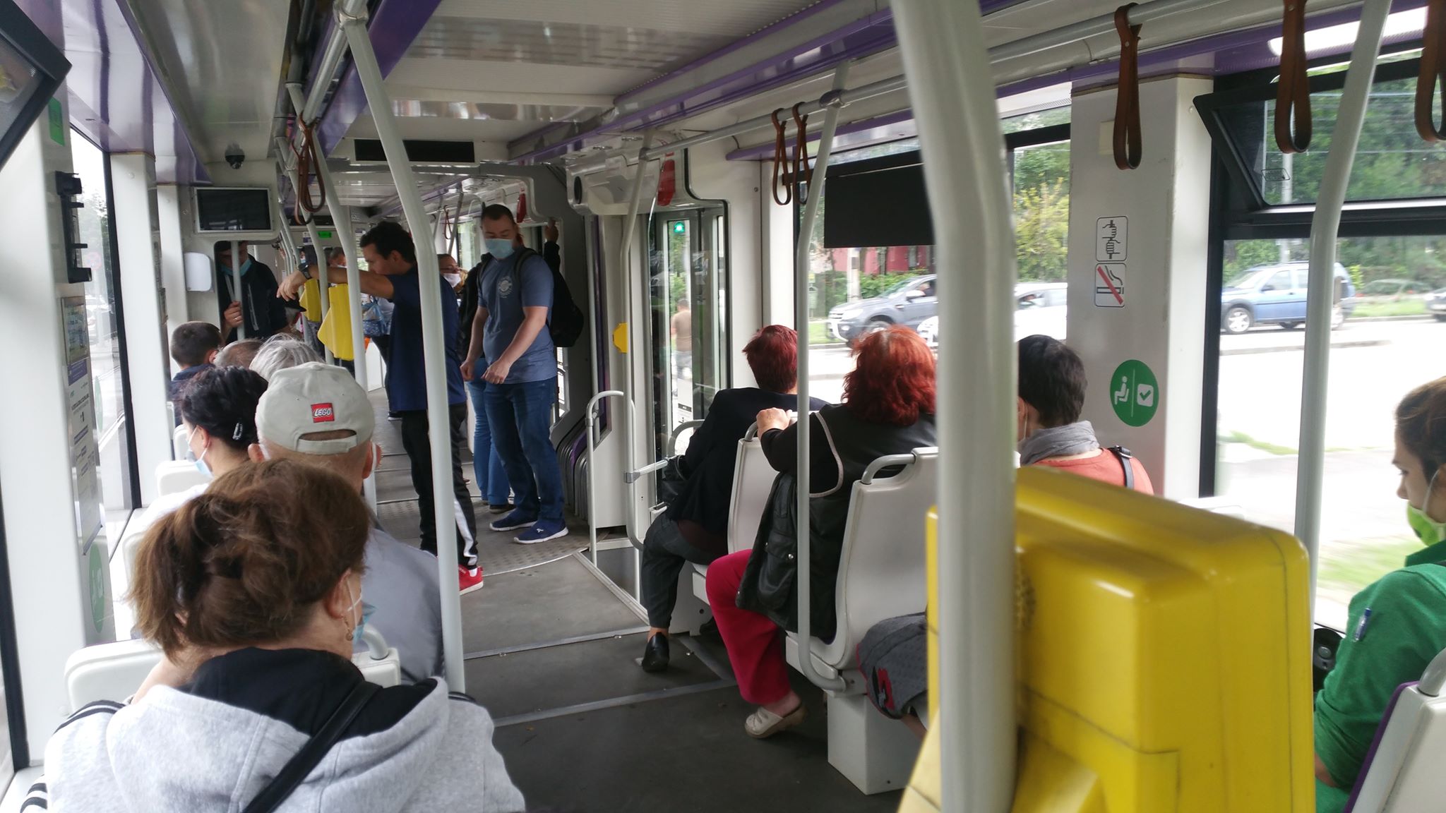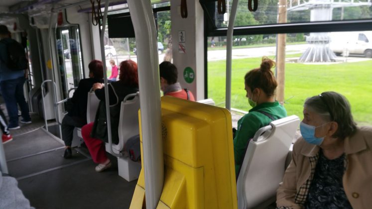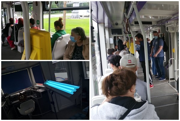În tramvaiul 4, care are unul dintre cele mai lungi trasee din Timișoara, reporterii Banatul Azi au surprins călători fără mască. De asemenea, pasagerii nu urcă sau coboară pe ușile marcate special. Mai mult, aproape toate scaunele erau ocupate, deși acestea au marcaje clare care le arată călătorilor unde pot să ia loc. Controlorii STPT se află pe traseu și verifică dacă pasagerii respectă măsurile de sigurață. Însă numărul este mic și nu pot fi prezenți constant pe toate mijloacele de transport în comun.