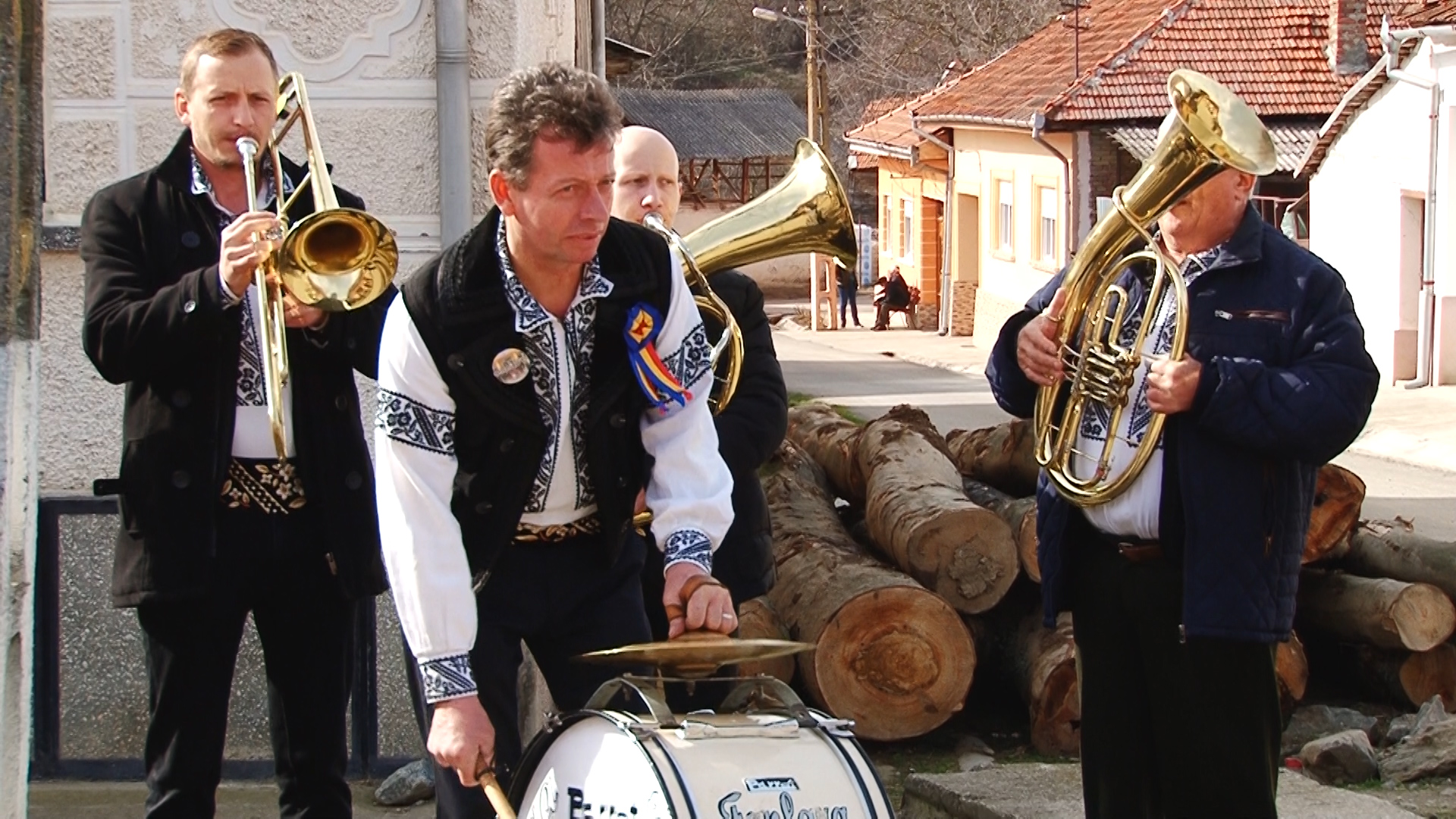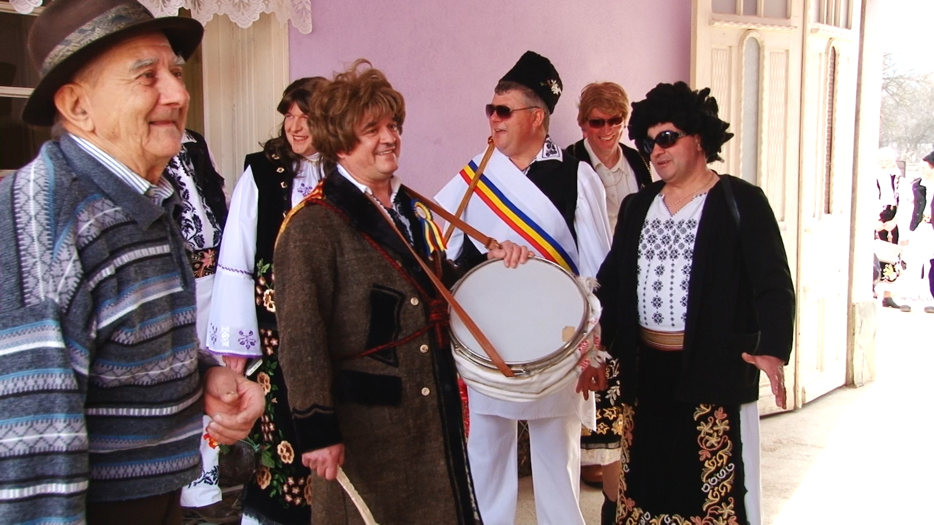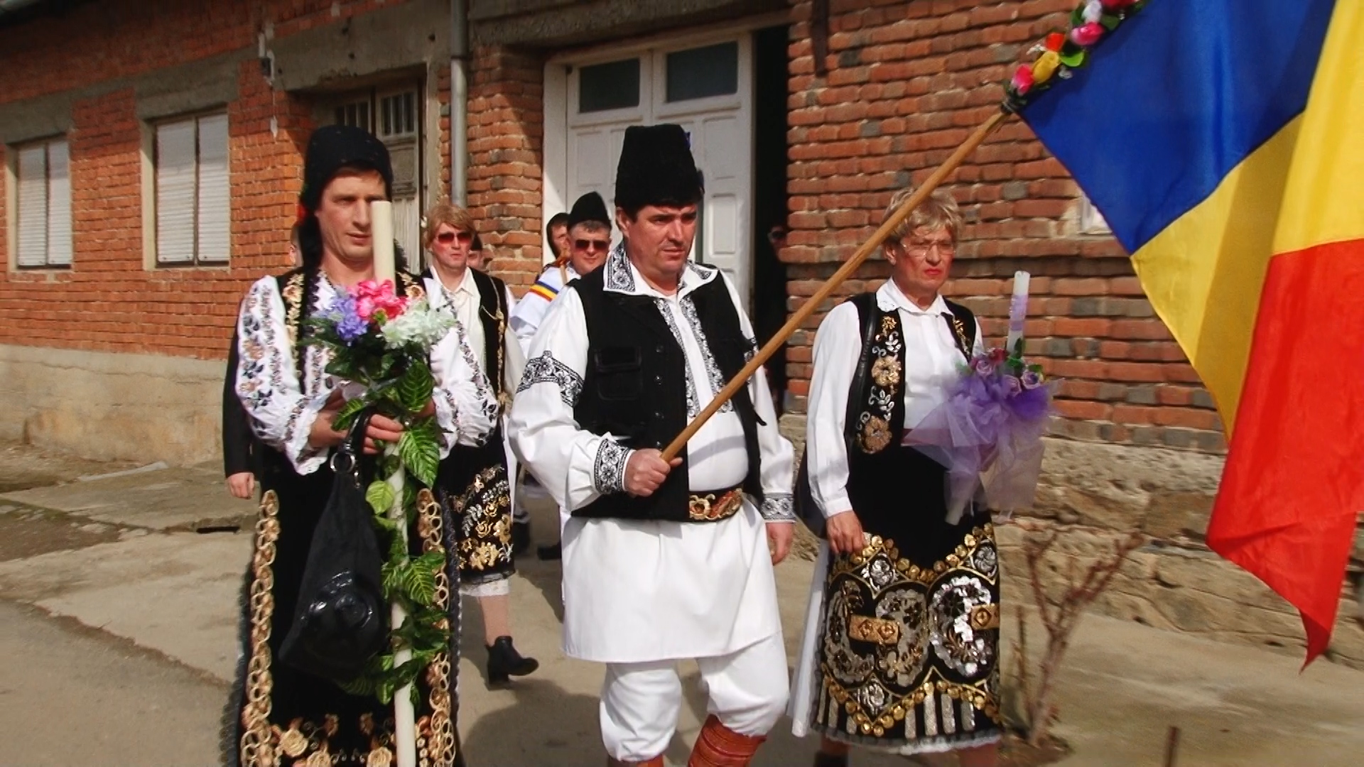 Există și o mireasă! Alaiul colindă satul cu steaguri și uiege de răchie în mână în sunetele muzicii. Dar și adună într-un butoiaș răchia oferită cu generozitate de săteni pentru balul de seară. Femeile satului sunt doar admise să admire trăsnăile, nu au de jucat nici un rol.