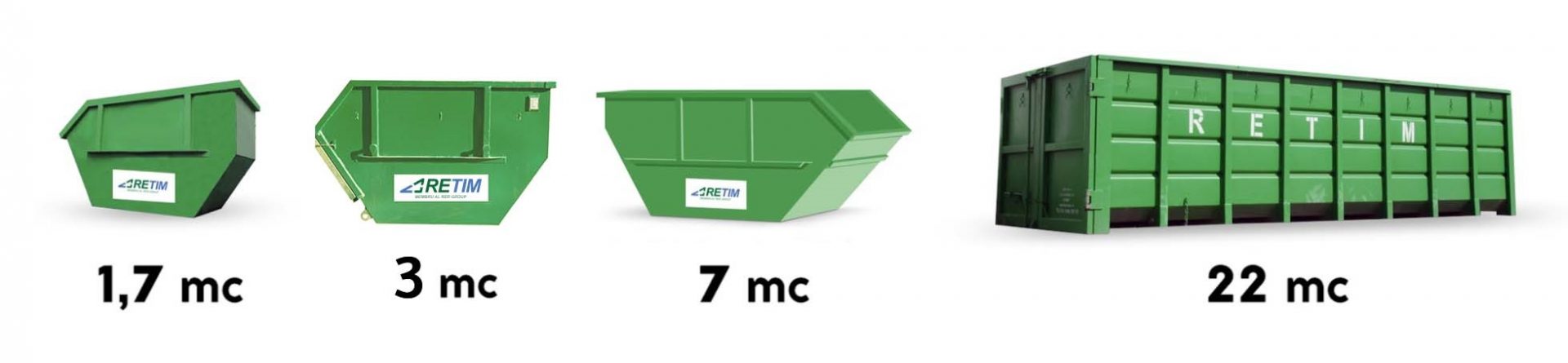 RETIM oferă tuturor clienților din zona de operare (Timișoara, zona periurbană, Lugoj, Buziaș, Recaș și localitățile din mediul rural) servicii de închiriere containere speciale pentru colectarea deşeurilor din construcţii şi demolări de 1,7 mc (doar pentru municipiul Timișoara), de 3mc (doar pentru municipiul Timișoara), de 7 mc și de 22 mc.
