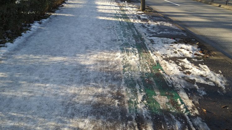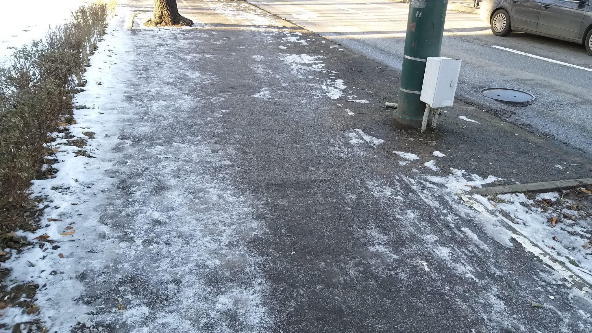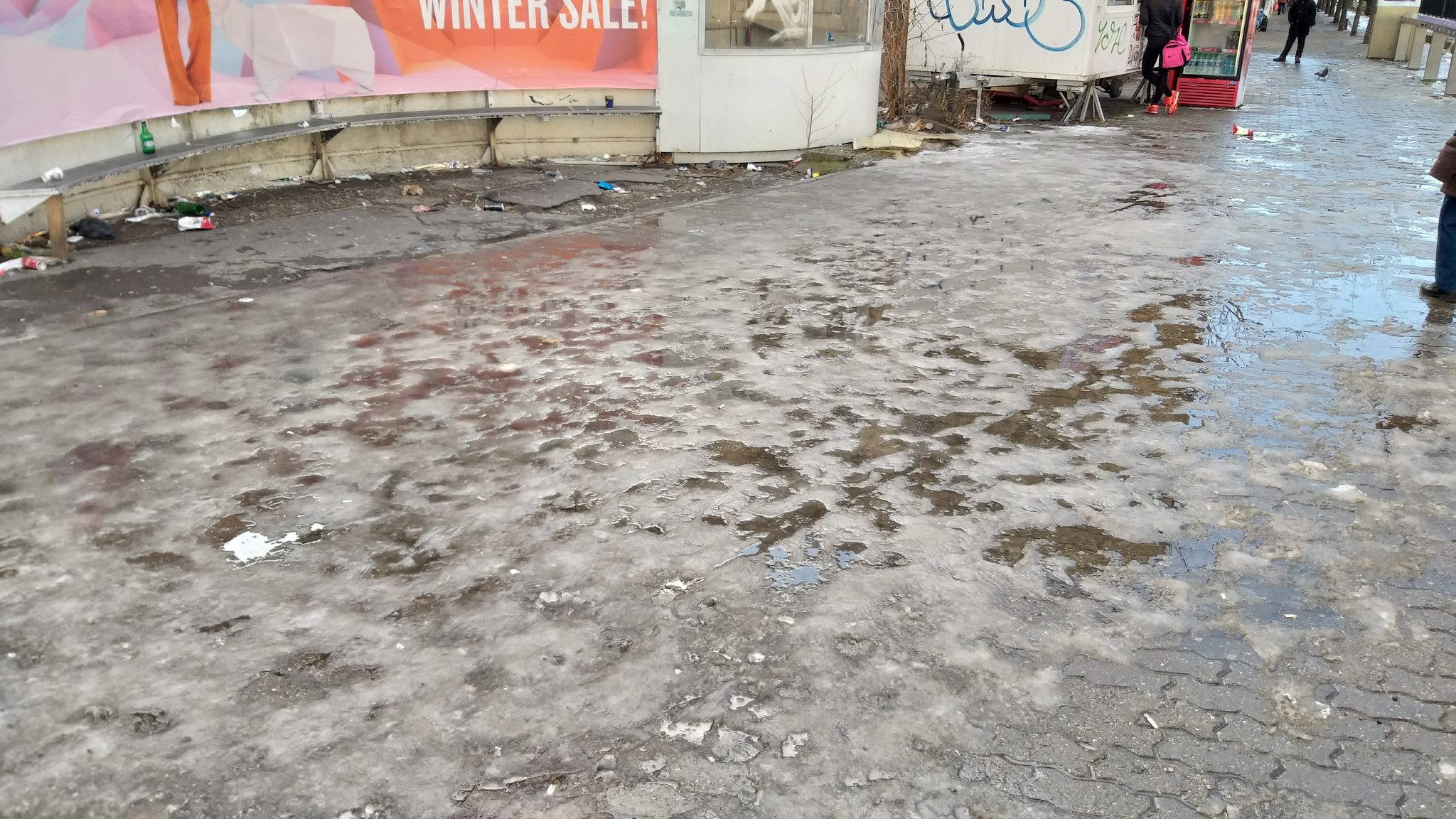 Stațiile de transport în comun erau dotate într-un trecut nu prea îndepărtat cu lăzi cu nisip și sare. Acum după modernizare nici măcar copertina de protecție nu mai există darămite lada bună la orice alunecuș cât de îndărătnic.