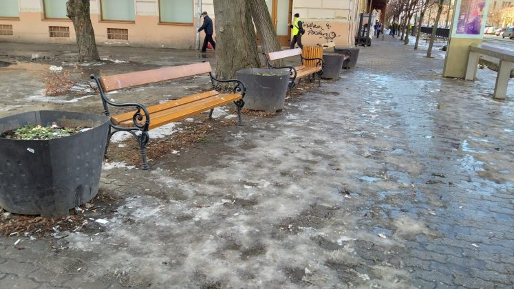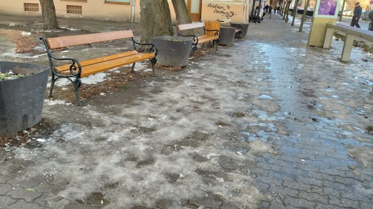 Etapa a doua a campionatului de alunecuș fără voie se încheie cu scor nedecis. A ținut vremea cu ghinioniștii și a mai topit oglinda de pe trotuare.