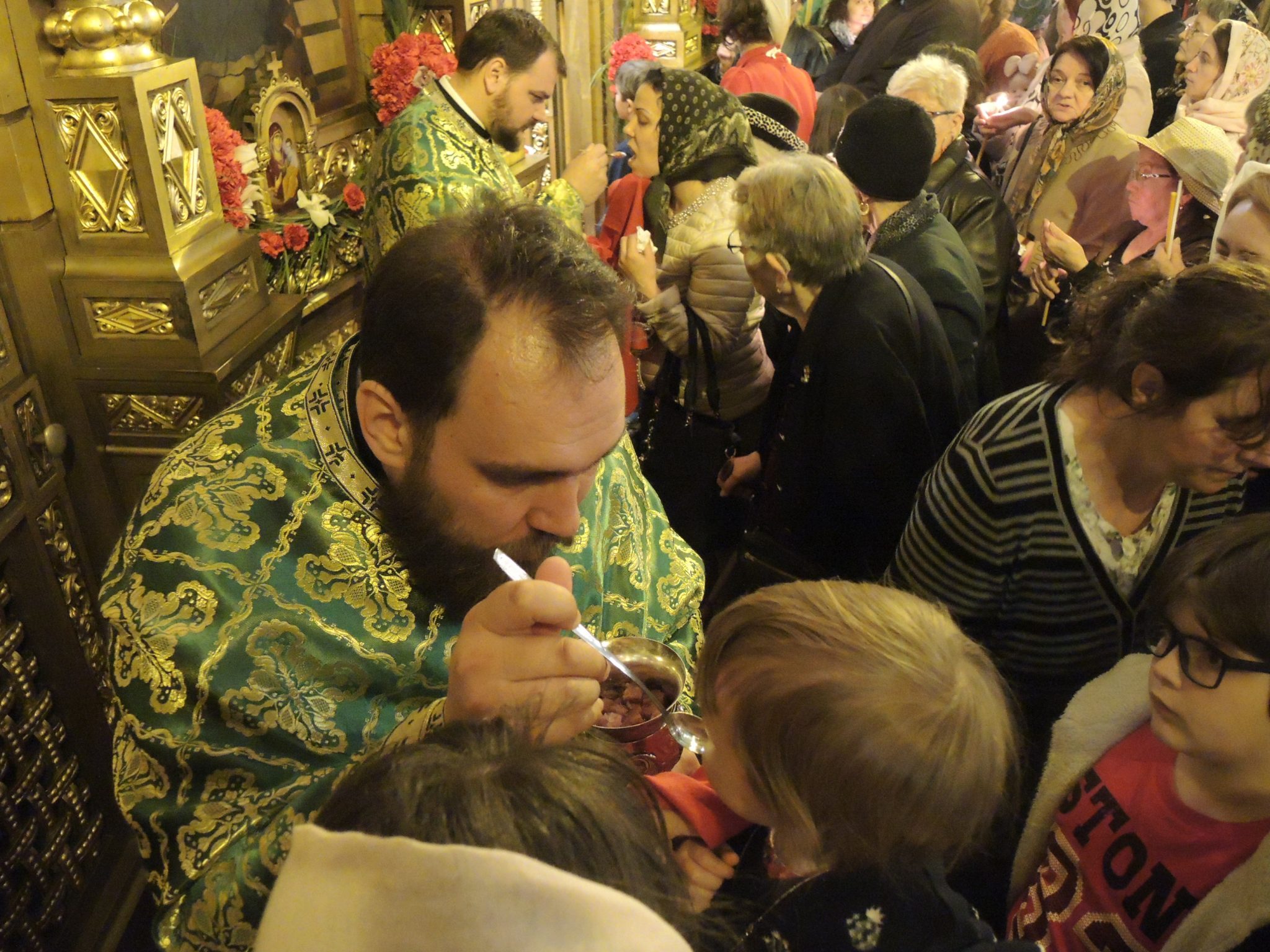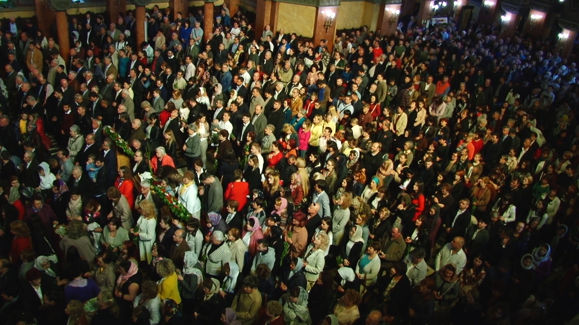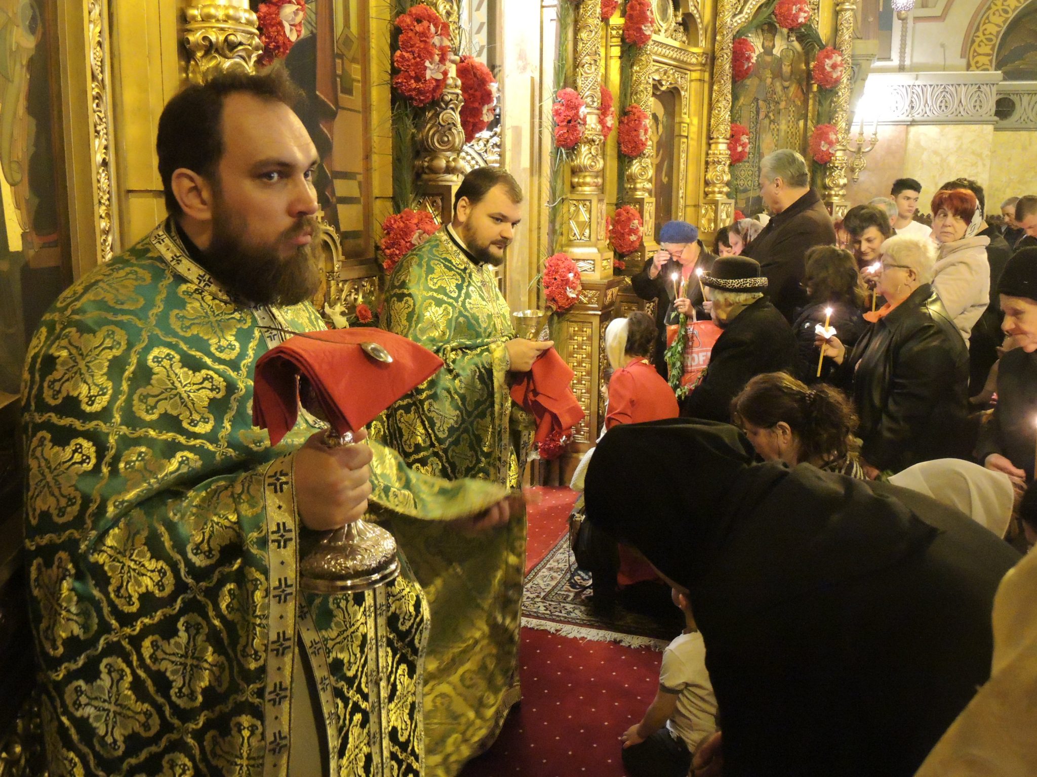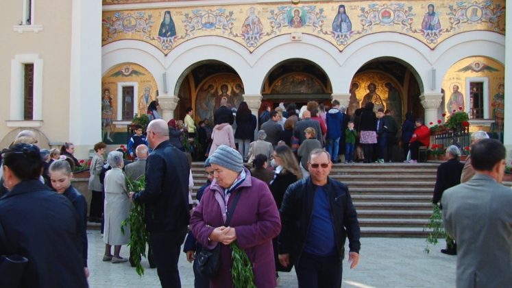 Iconostasul lăcașului era împodobit cu flori roșii precum sângele ce va curge doar peste câteva zile. Dar și cu ramuri de salcie ce sunt speranța. La exterior, cozi imense de credincioși s-au format pentru a primi un mănunchi de verdeață ce înlocuiesc frunzele de palmier și de finic de pe meleagurile sfinte cu care a fost întâmpinat Fiul Domnului.