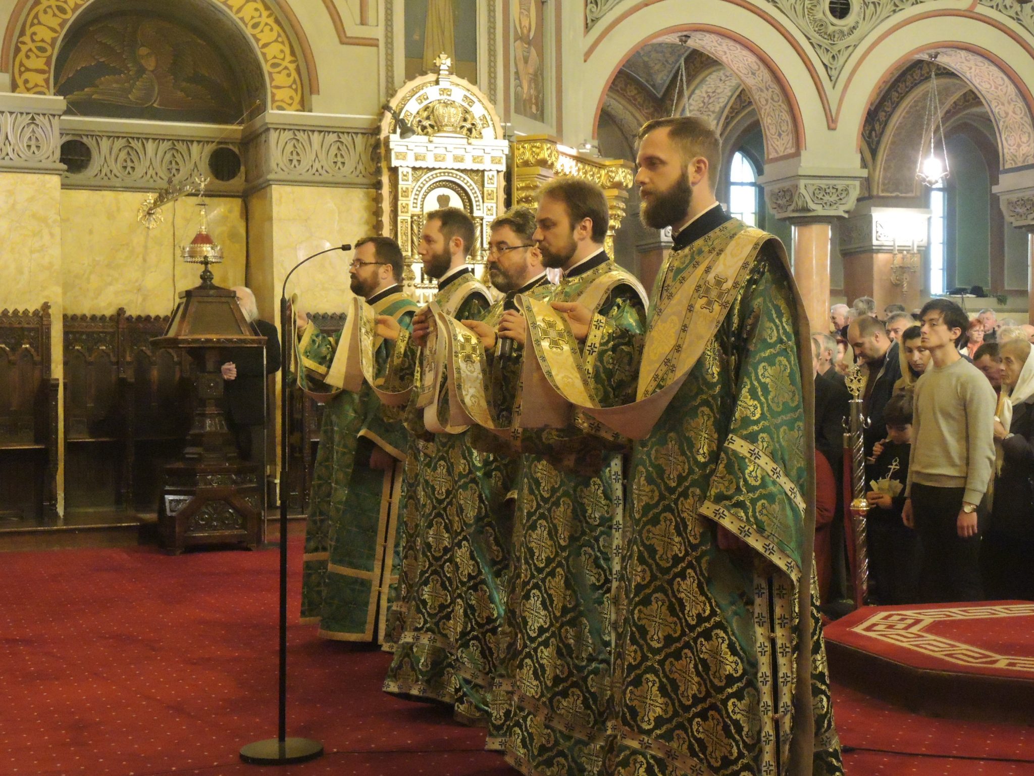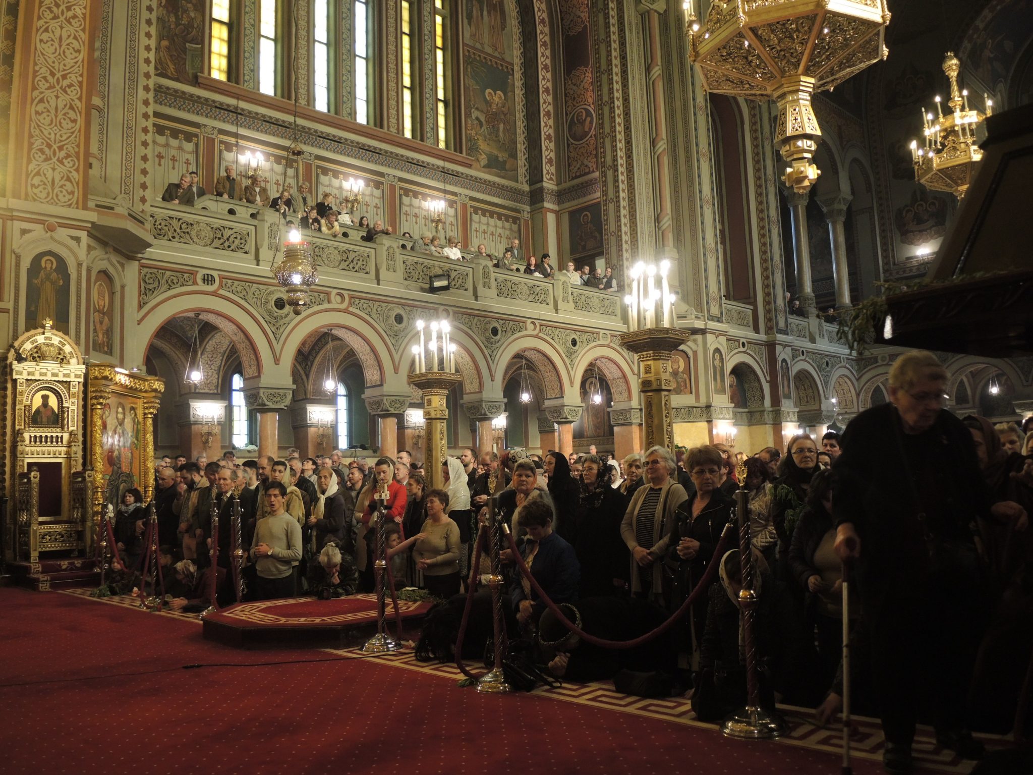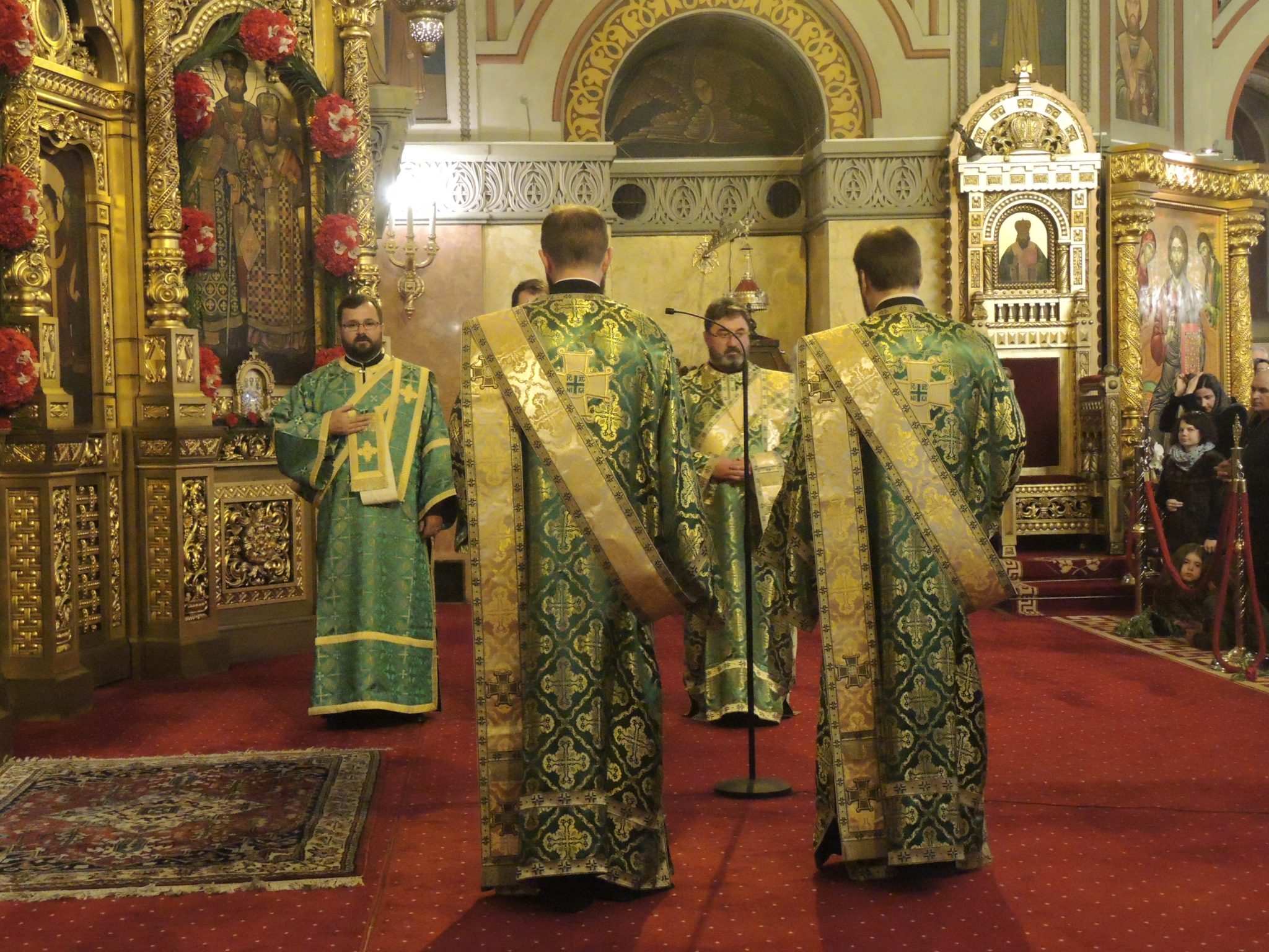 Iconostasul lăcașului era împodobit cu flori roșii precum sângele ce va curge doar peste câteva zile. Dar și cu ramuri de salcie ce sunt speranța. La exterior, cozi imense de credincioși s-au format pentru a primi un mănunchi de verdeață ce înlocuiesc frunzele de palmier și de finic de pe meleagurile sfinte cu care a fost întâmpinat Fiul Domnului.