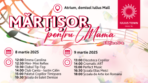 Te invităm să petreci timp de calitate alături de cei dragi sâmbătă, 8 martie 2025, începând cu ora 12:30, în Atrium, unde tineri artiști talentați vor oferi spectacole speciale de dans, canto și balet, dedicat tuturor doamnelor și domnișoarelor. Show-ul continuă și duminică, de la ora 13:00, cu o discotecă pentru copii și alte momente artistice deosebite. Programul complet și mai multe detalii sunt disponibile pe pagina de Facebook a Iulius Town.