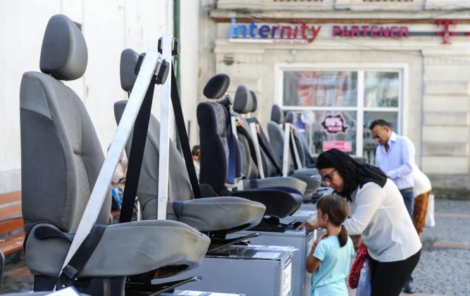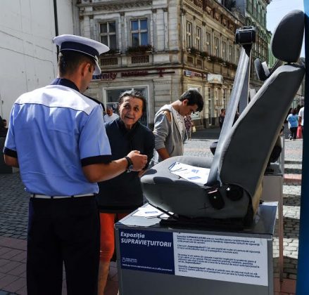 Expoziţia face parte din campania „Trişezi centura, păcăleşti viaţa”, disponibila şi online, pe site-ul www.supravietuitori.ro.