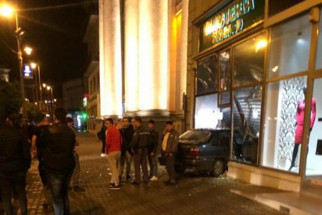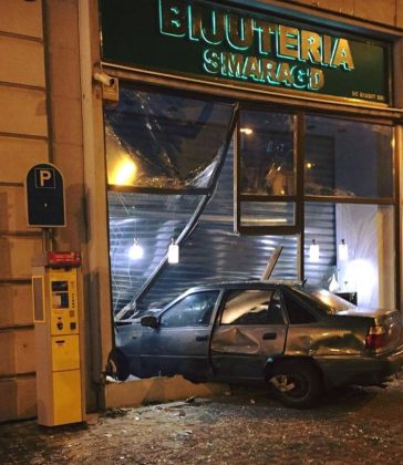 Un accident cel puțin straniu s-a petrecut luni, la miezul nopții, pe principala arteră a Municipiului Arad. Puținii arădeni care mai erau pe la terasele de pe Bulevardul Revoluției în jurul orei 00:00 s-au speriat când de peste drum au auzit o bubuitură puternică urmată la o fracțiune de secundă de sunetele unei vitrine sparte.