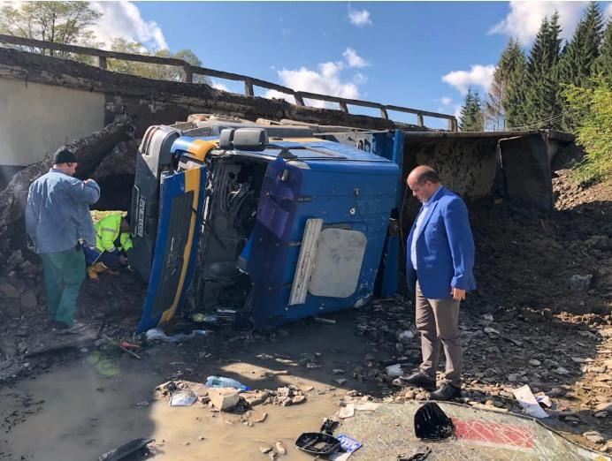 Un bărbat de 27 de ani s-a răsturnat cu basculanta în albia unui râu din județul Suceava, după ce podul pe care îl traversa s-a surpat. Accidentul s-a petrecut, marți, în localitatea Găinești, din județul Suceava, iar din primele date podul s-a prăbușit sub greutatea basculantei care era încărcată cu pământ.