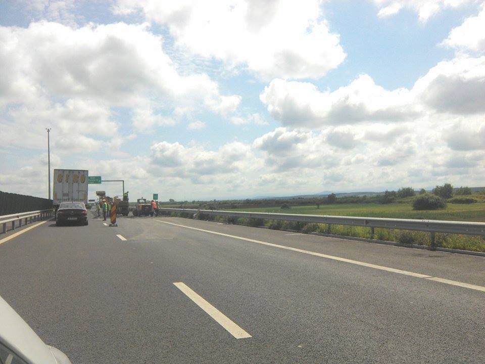 Pe aceeaşi autostradă s-a muncit şi în luna mai, atunci când constructorul a trasat marcajele rutiere.