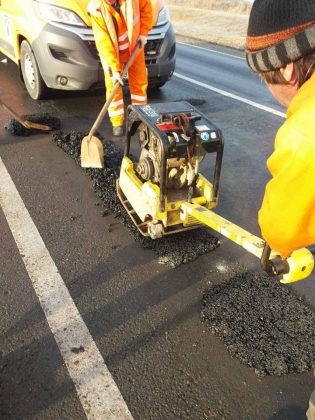Reparații de urgență cu mixtură stocabilă realizate în cursul zilei de ieri 27.12.2018 de Secția de Drumuri Naționale Timișoara pe DN 68A, DN6 – Pasaj Remetea și km 546-547, DN59 și DN 59B.
