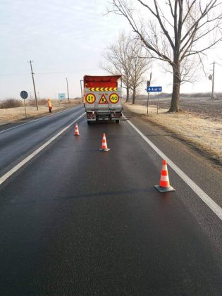 Și în județul Arad a fost nevoie de intervenții. Drumarii de aici au astupat gropile de pe DN7 tot cu mixtură stocabilă, ce poate fi turnată pe vreme rece. De asemenea, pe acest drum național au fost spălate și indicatoarele rutiere.