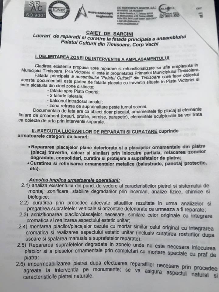 Nicolae Robu a postat pe pagina lui de Facebook o poză cu prima pagină a caietului de sarcini în baza căruia se face reabilitarea faţadei Operei din centrul oraşului. Edilul a menţionat că, după finalizarea lucrărilor, faţa instituţiei de cultură va arăta exact ca acum.