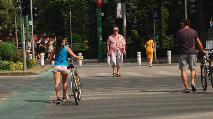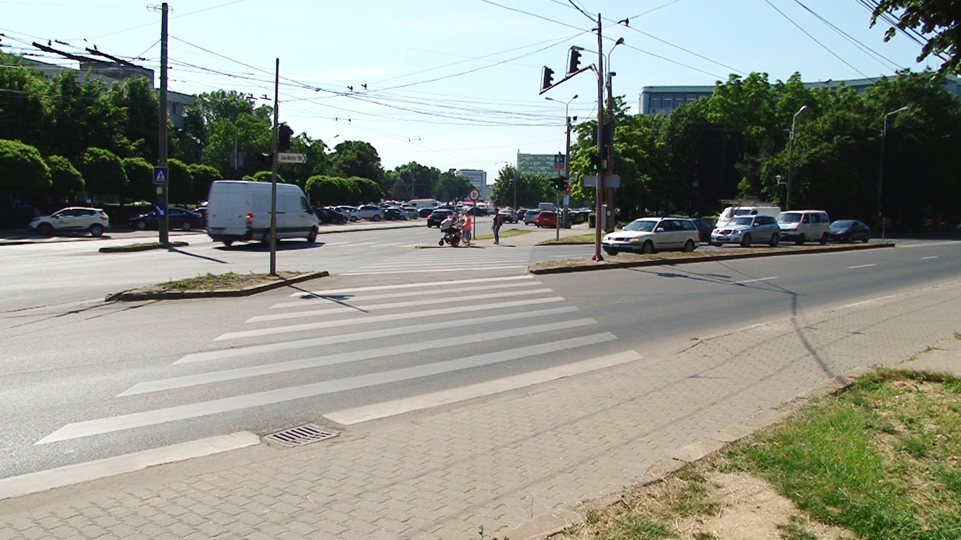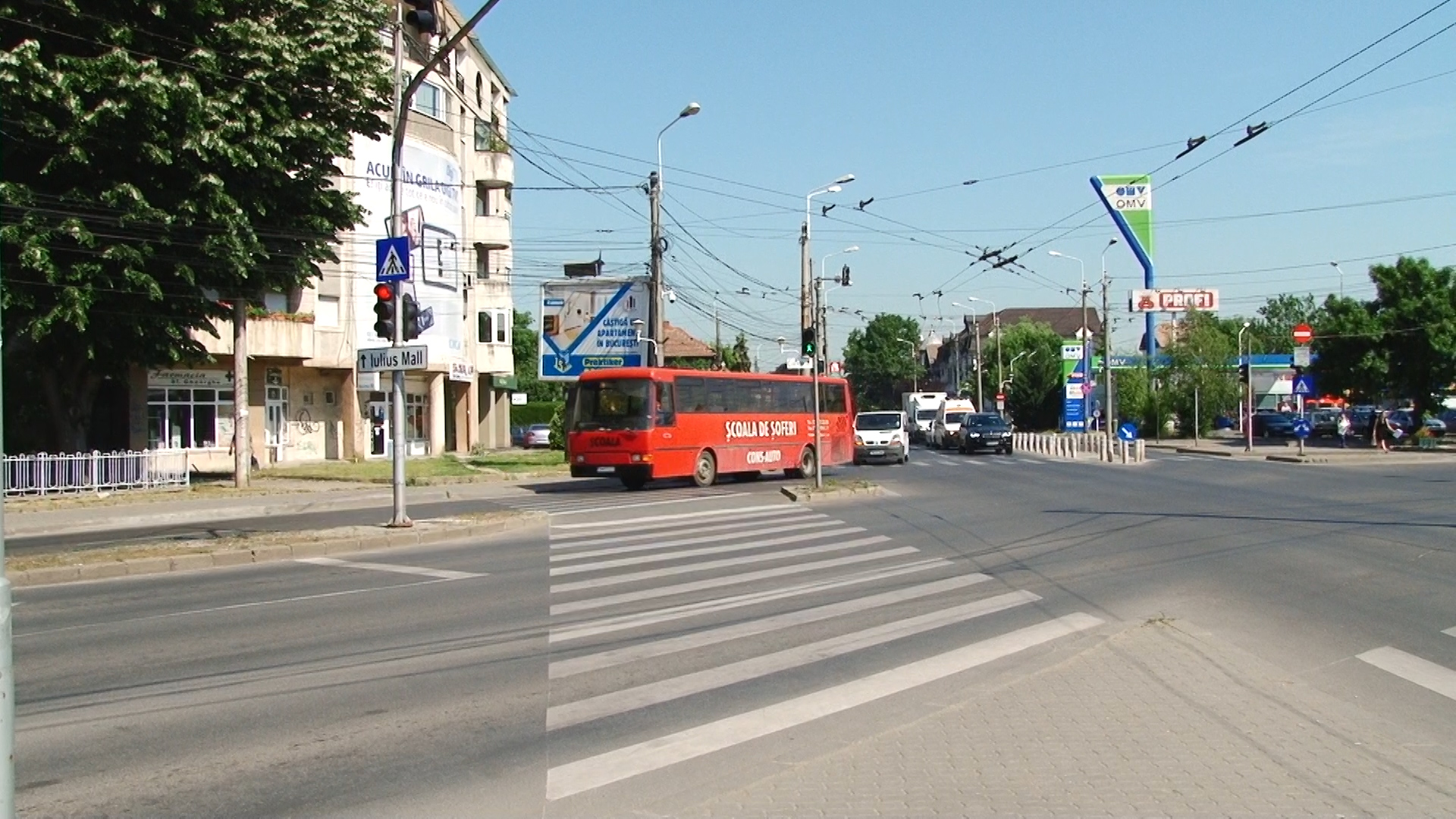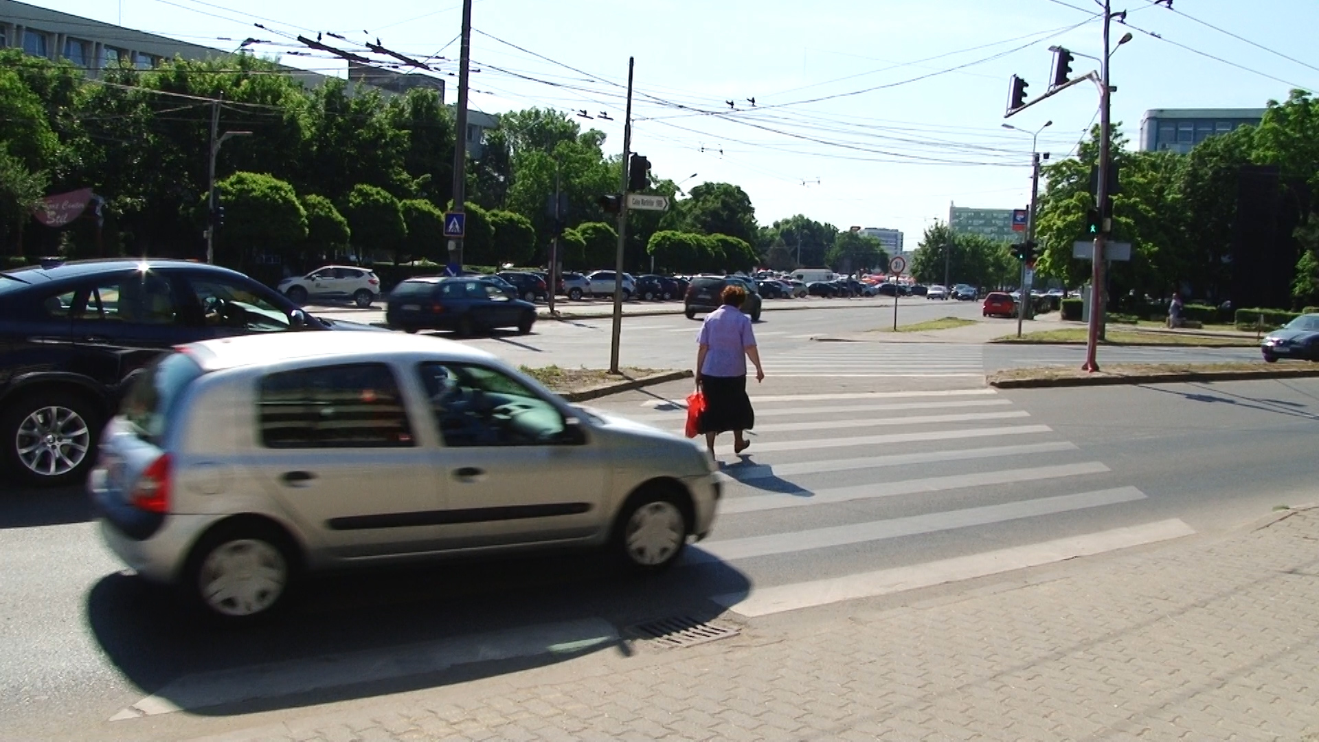 Venim în continuare spre strada Cluj şi la Casa Tineretului dăm de intersecţia cu Calea Martirilor 1989, unde este o circulaţie foarte intensă. Pe lângă faptul că timpii sunt foarte scurţi, este şi o mare problemă: pietonii trec în acelaşi timp cu maşinile, iar dacă nu eşti atent, la fiecare minut poţi fi lovit de o maşină. Să nu uităm că aproape zilnic au loc accidente pe trecerile de pietoni.