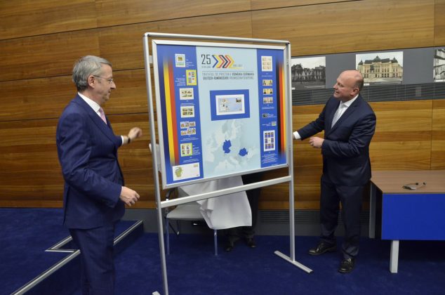 Cu prilejul semnării Protocolului celei de a XX-a sesiuni a Comisiei, a fost prezentat un întreg poștal aniversar realizat de Romfilatelia – 25 de ani de la semnarea Tratatului dintre România și Republica Federală Germania privind cooperarea prietenească și parteneriatul în Europa.